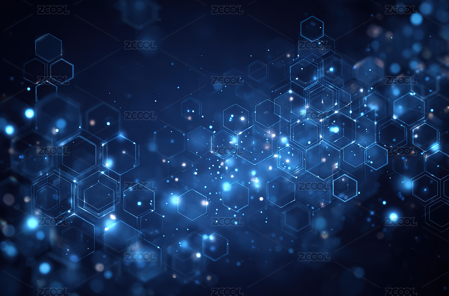 蓝色六边形光点科技背景