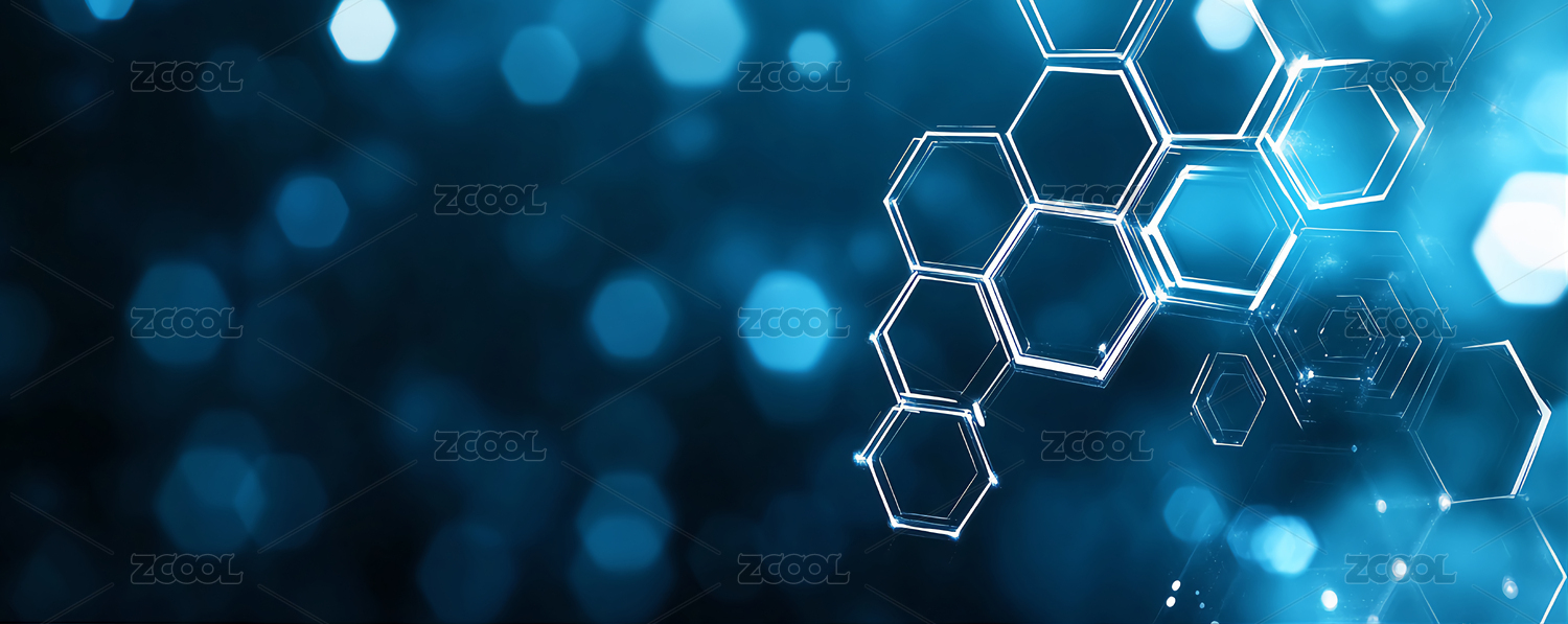 蓝色科技感六边形背景图