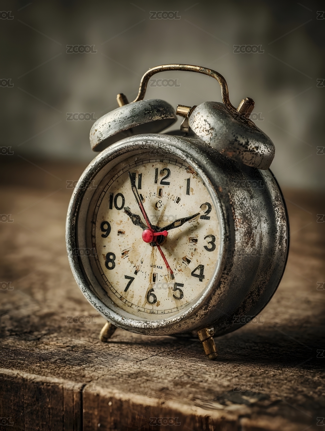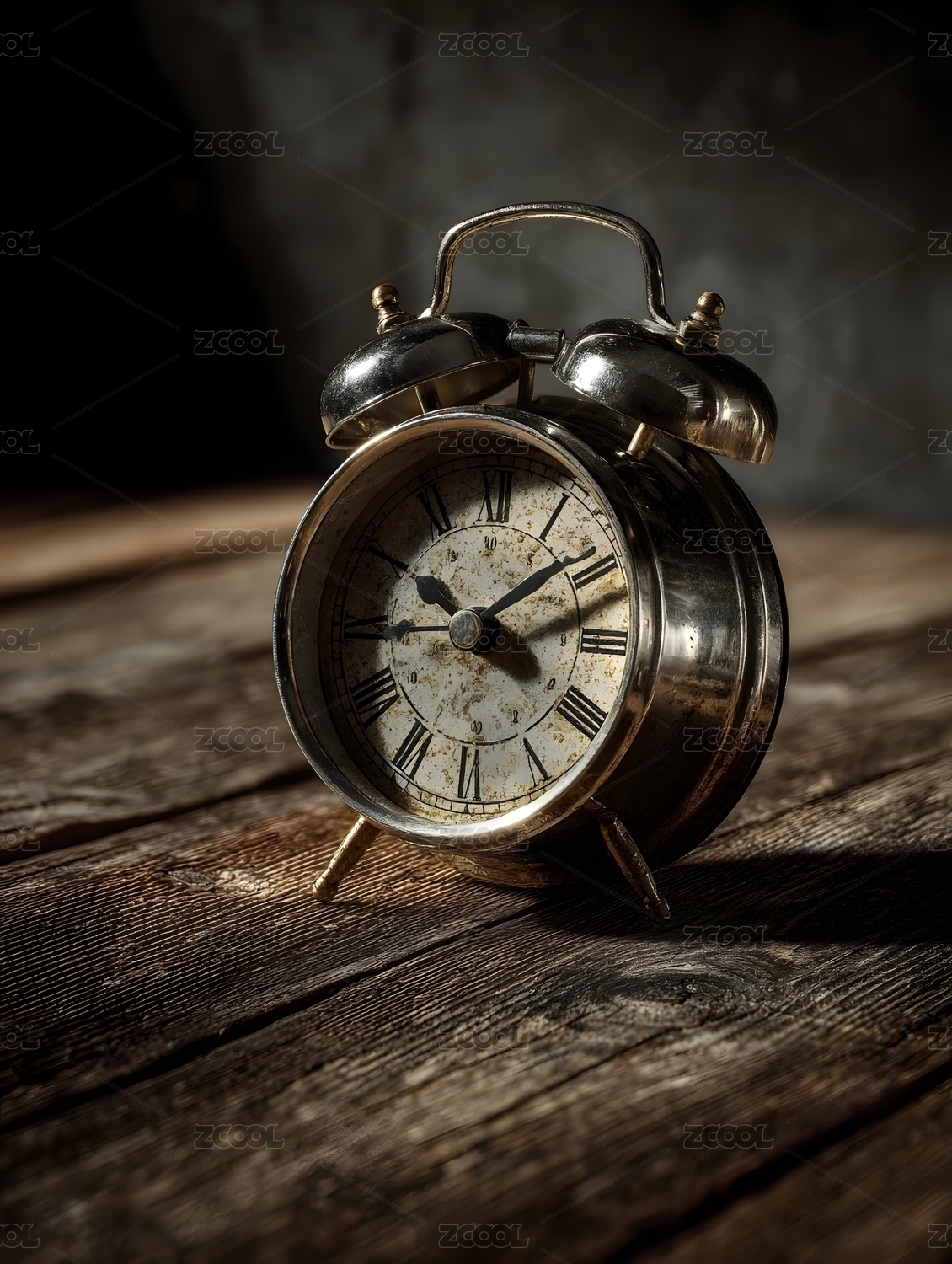 复古闹钟静置木质桌面