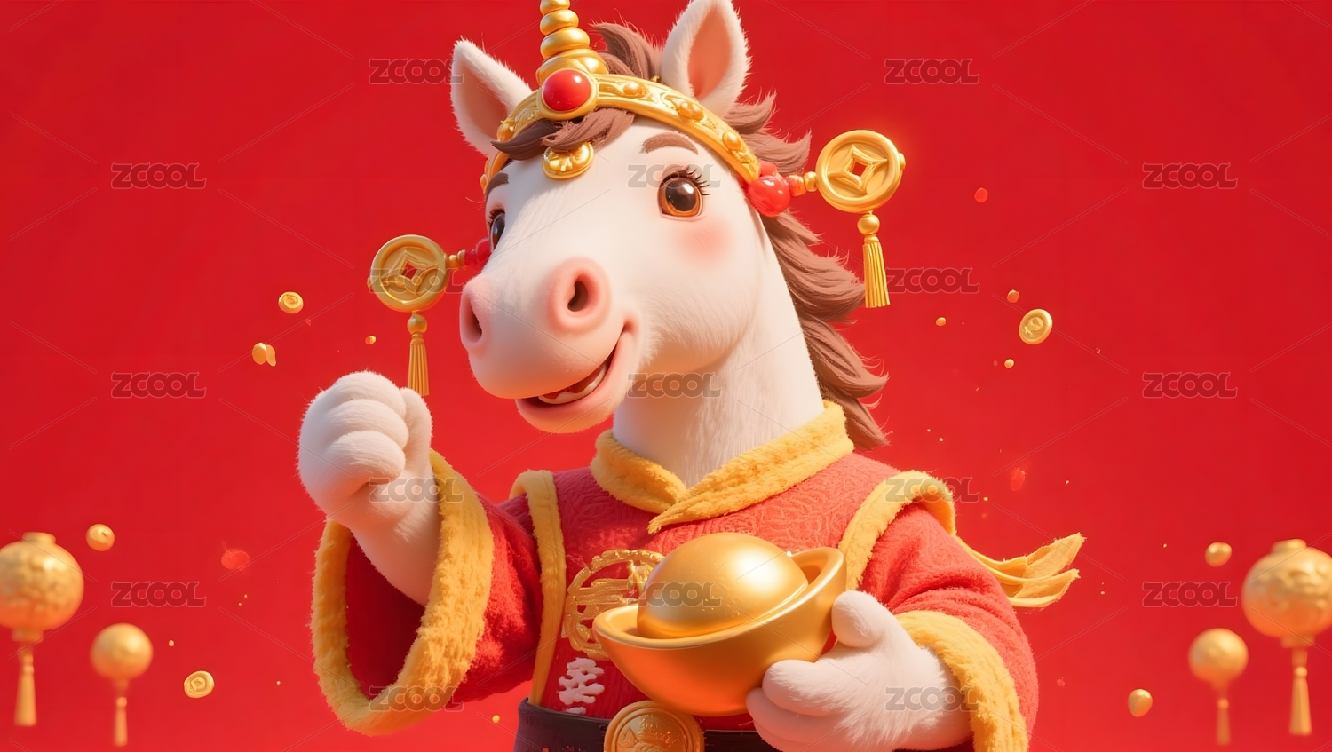 背景,红色,笑脸,喜庆,马,装饰,财神,服饰,金币,元宝