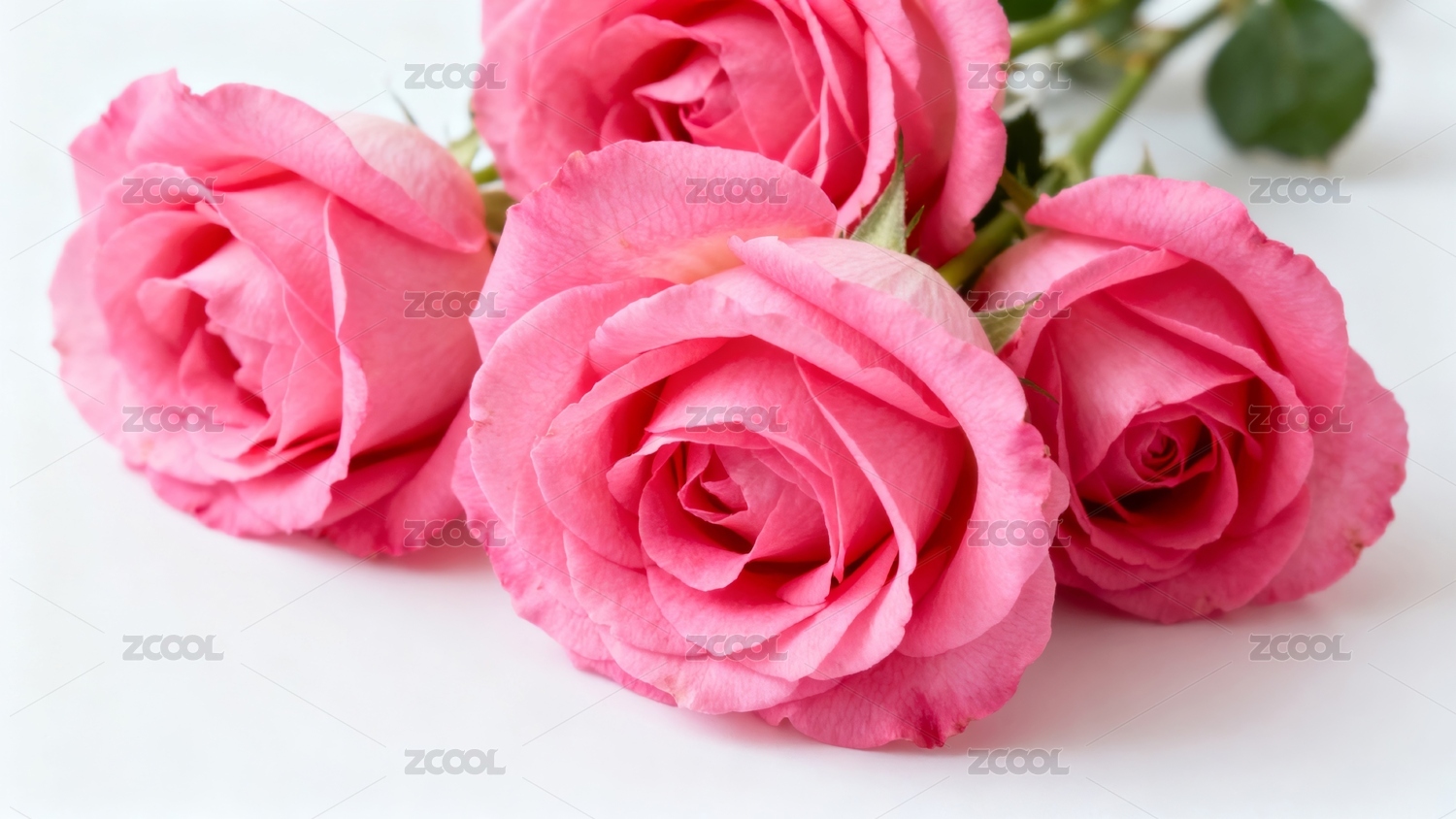 绽放盛开的新鲜切花粉红雪山玫瑰