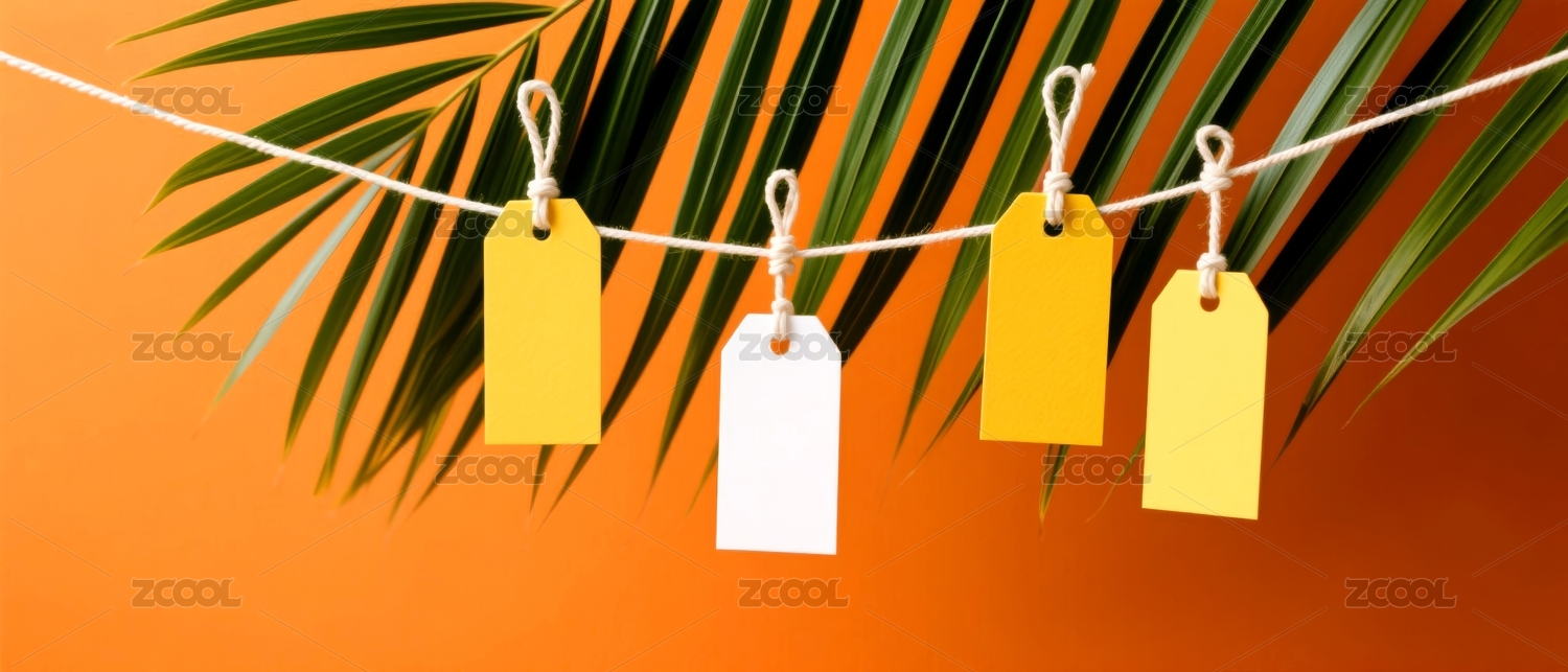麻绳,橙色标签,粉色标签,黄色标签,悬挂,孔洞,色彩鲜艳,标签设计,简约,背景