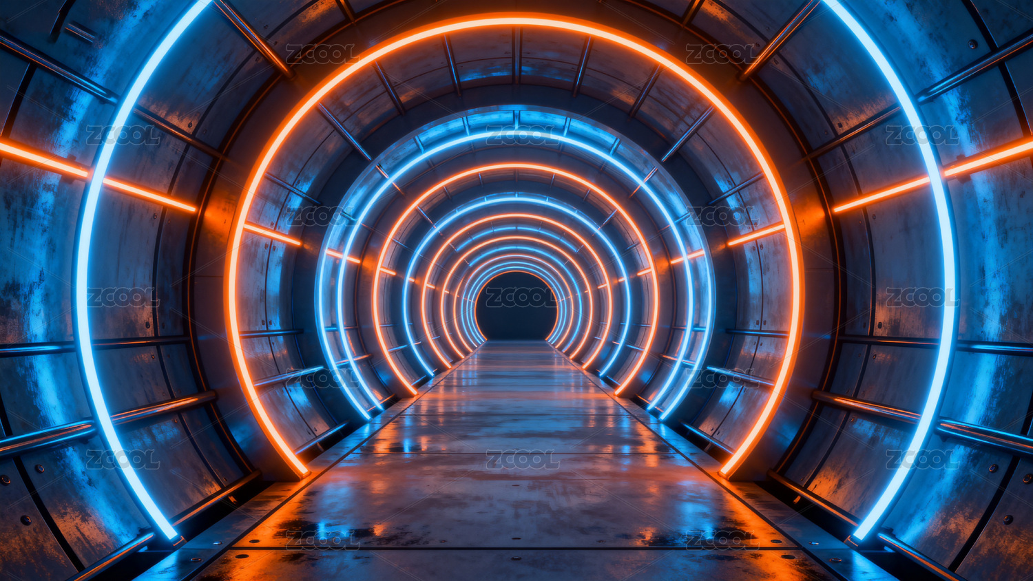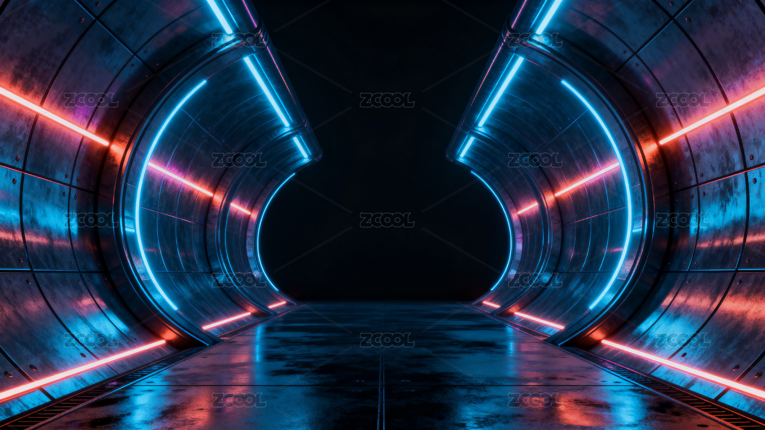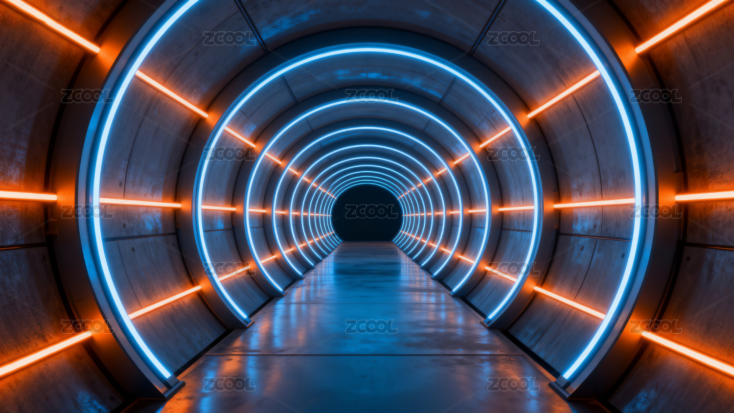 黑暗隧道发光照明抽象技术速度概念三维渲染