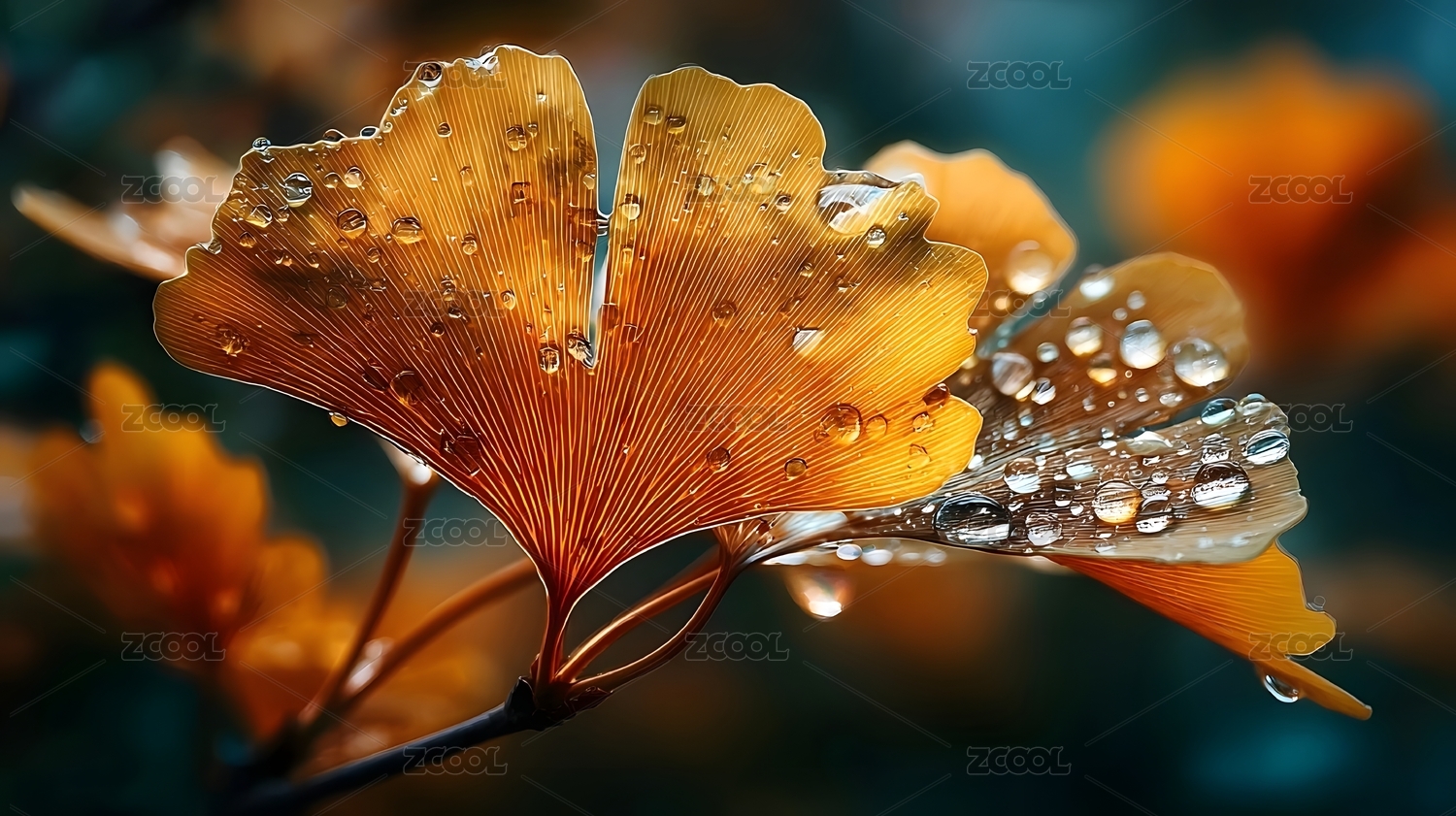 边缘,反光,背景,纹理,橙色,绿色,光影,阳光,银杏,水珠