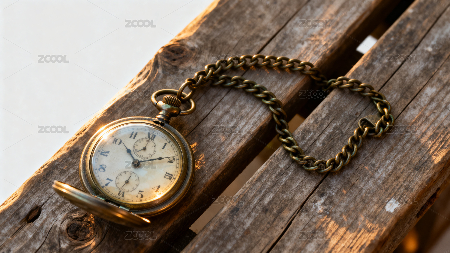 复古怀表静置木板