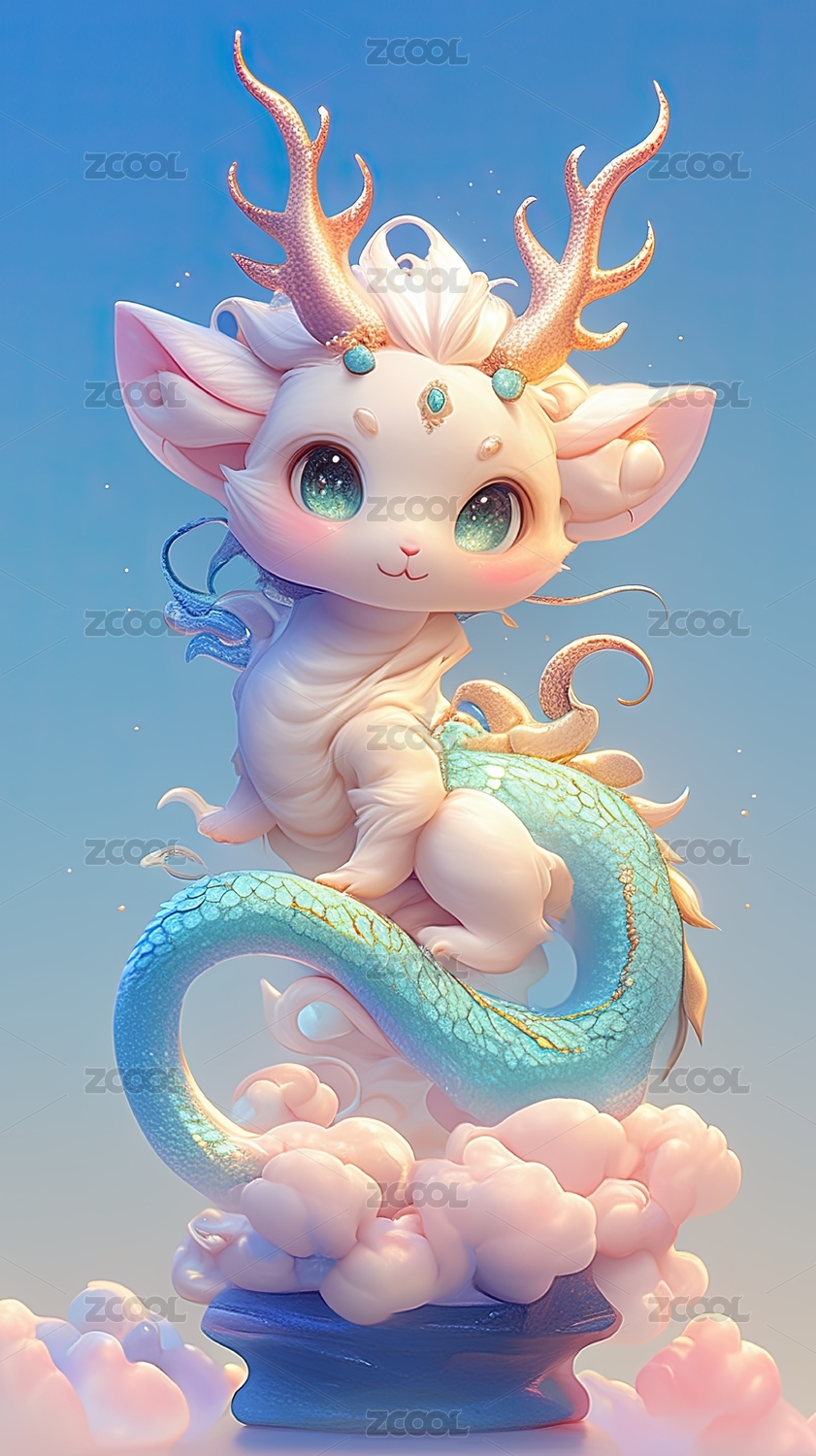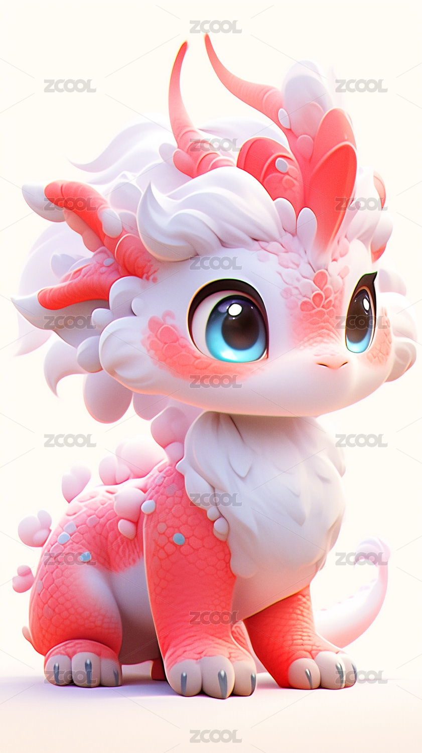 可爱梦幻龙宝宝三维立体插画
