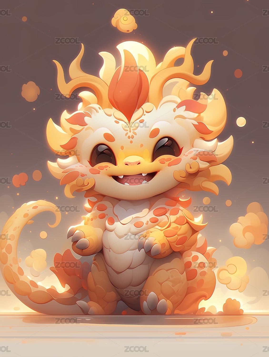 金色火焰小龙的艺术插画