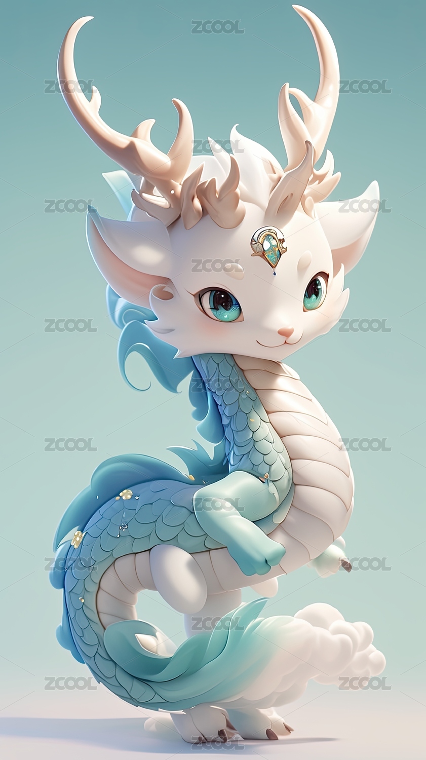 可爱卡通青色小龙三维立体形象