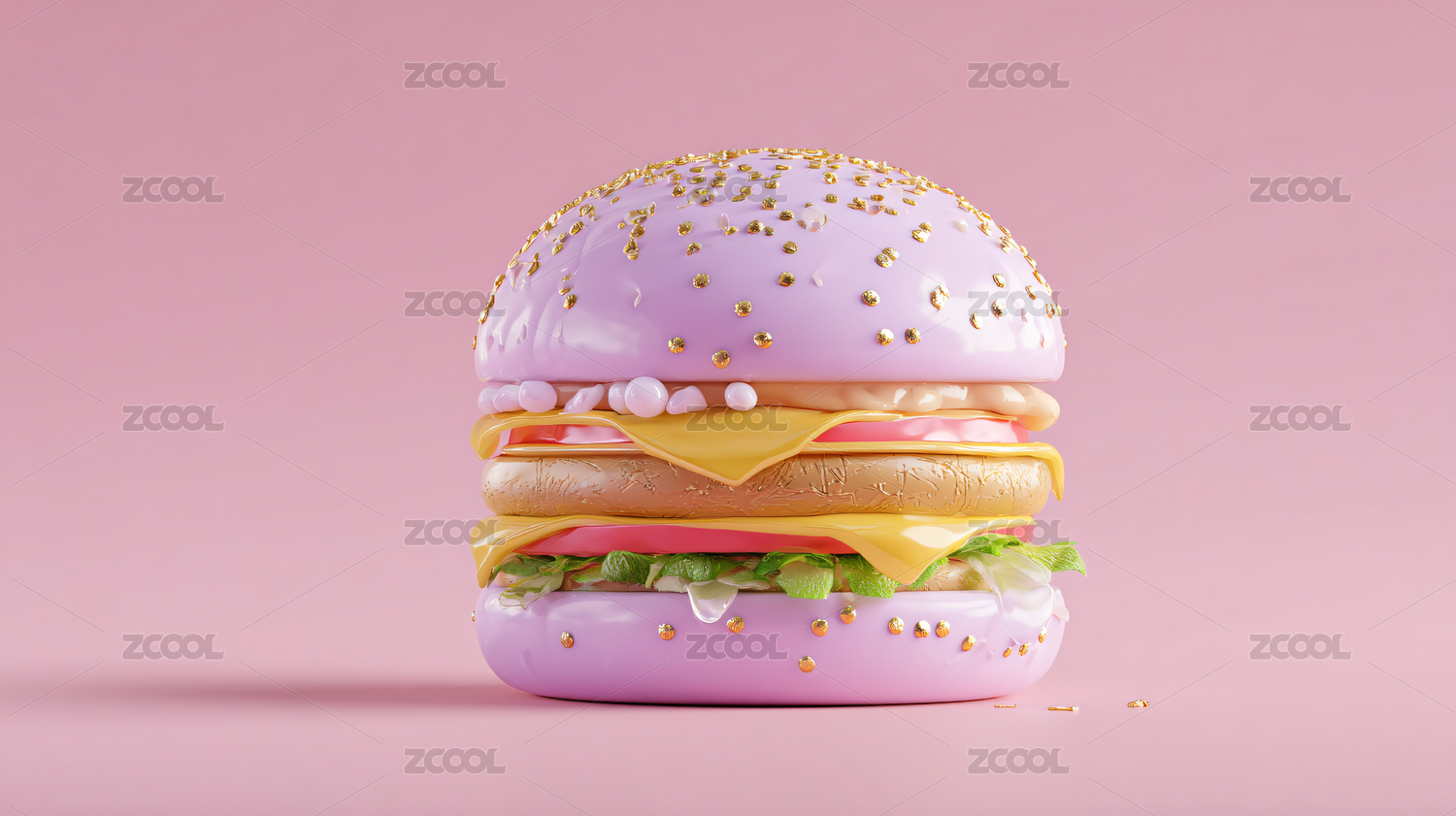 柔粉背景鲜艳汉堡