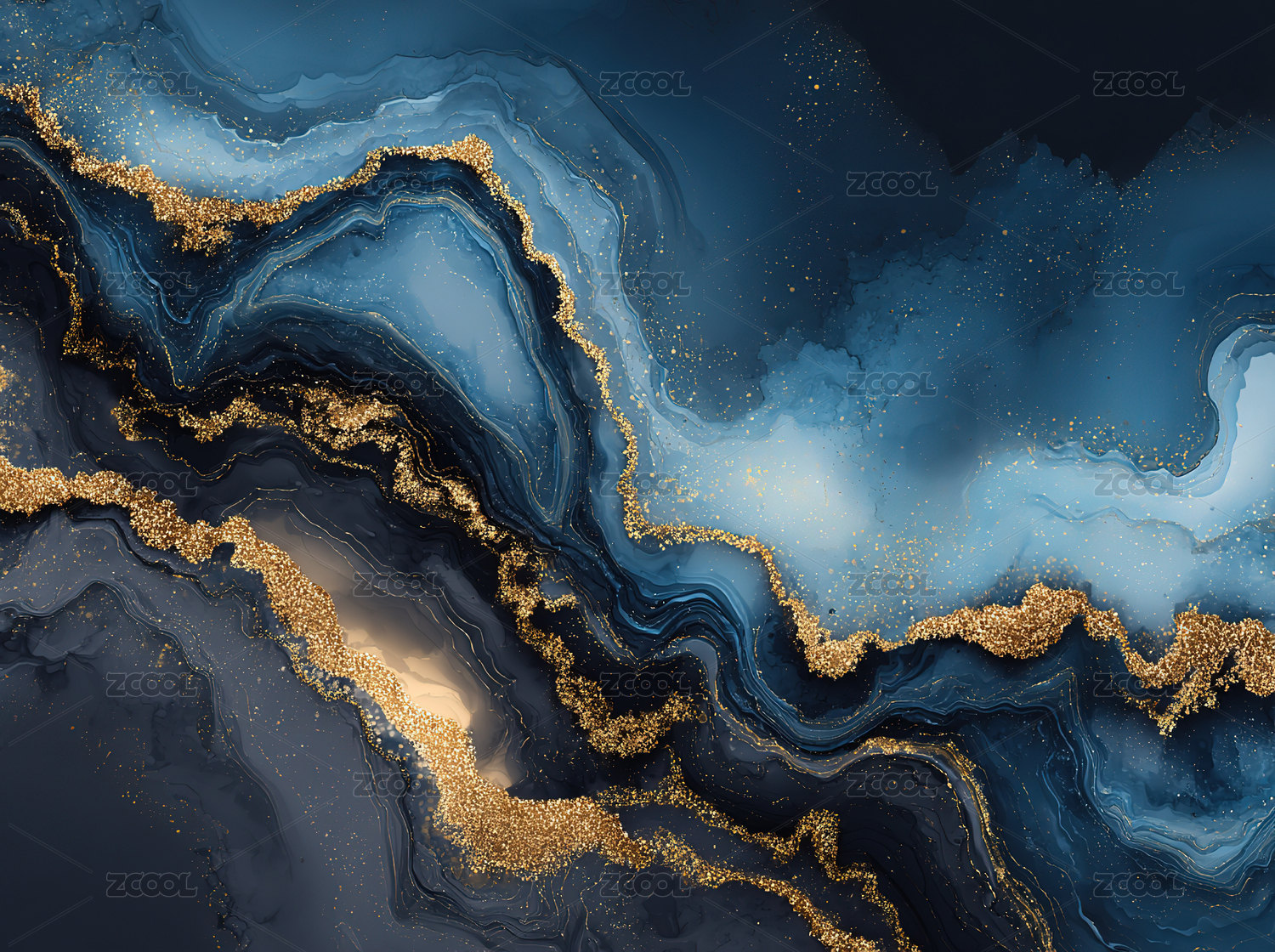 深蓝大理石纹理,金色裂纹交织出奢华感