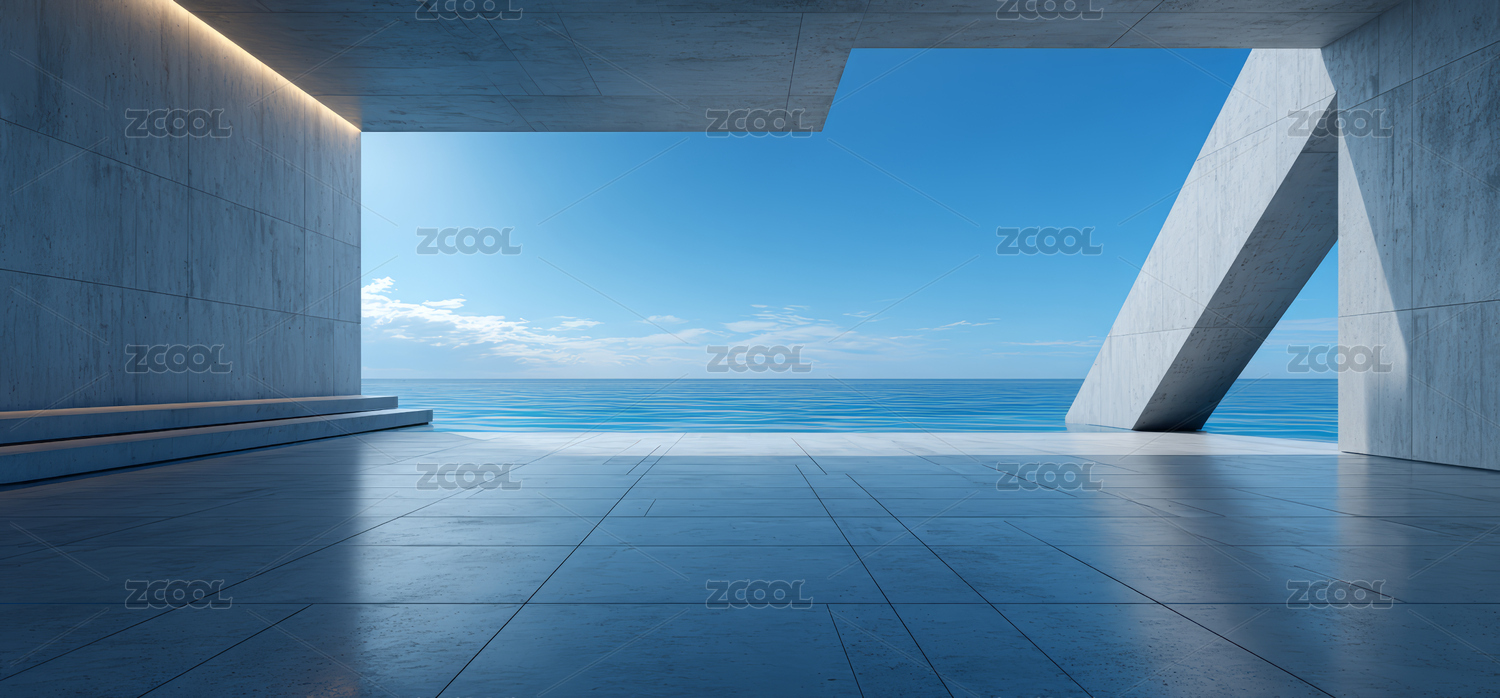 极简,建筑,空间,混凝土,结构,蓝色,天空,海景,光影,效果