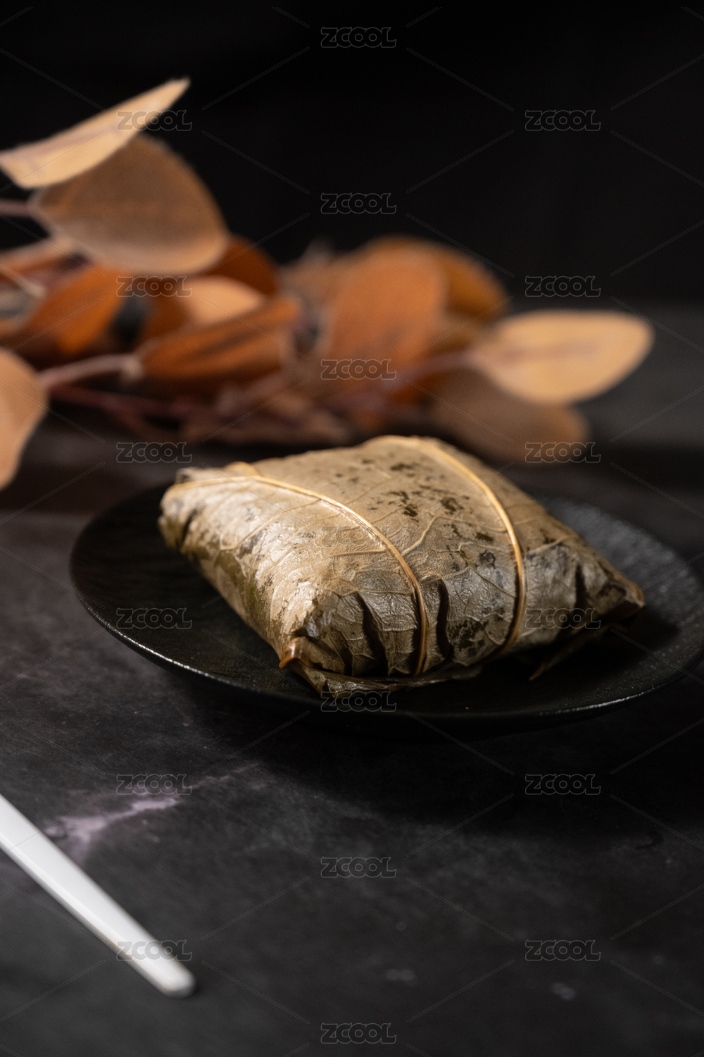 桌面上的盘子里的美味可口的荷叶糯米鸡