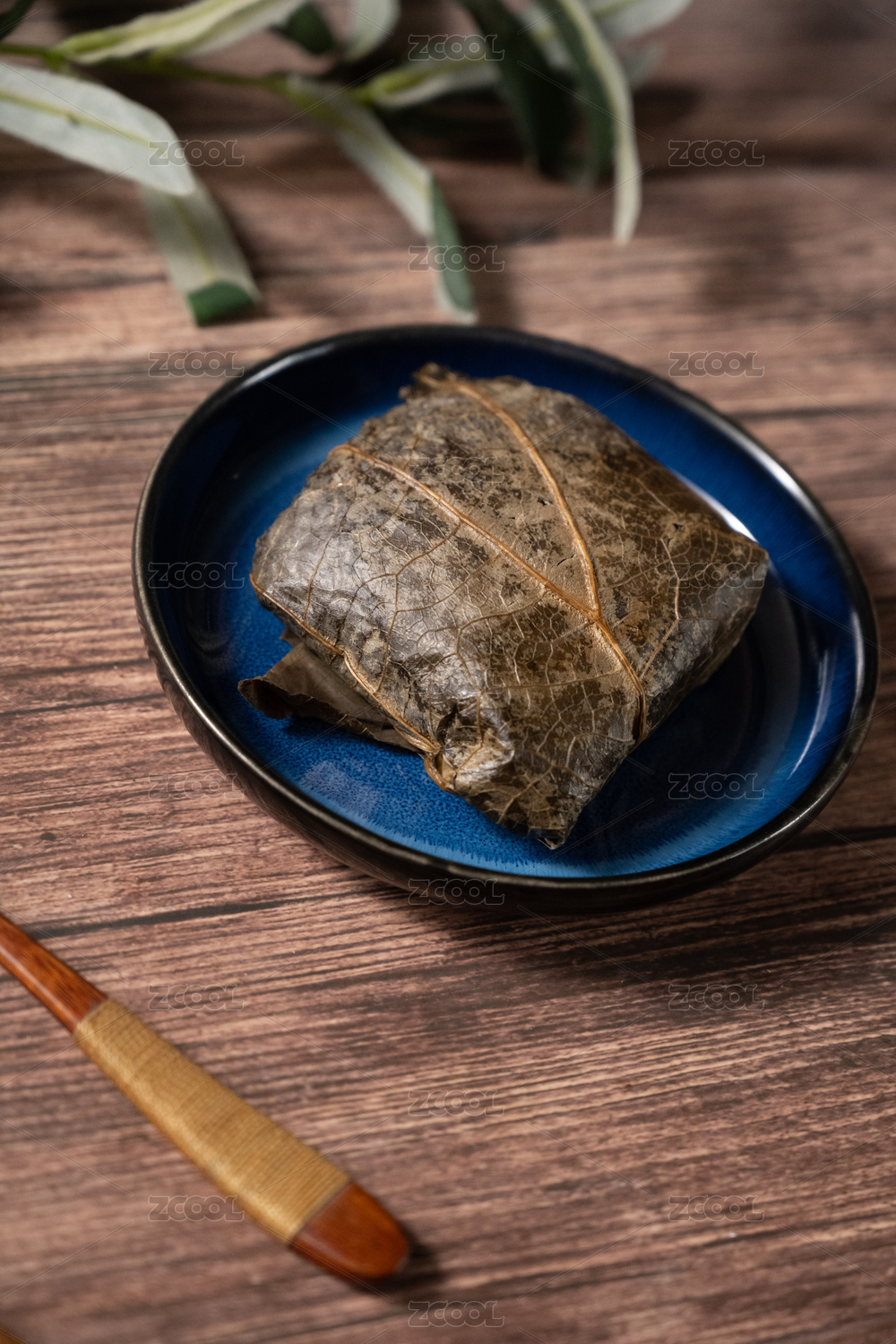 桌面上的盘子里的美味可口的荷叶糯米鸡