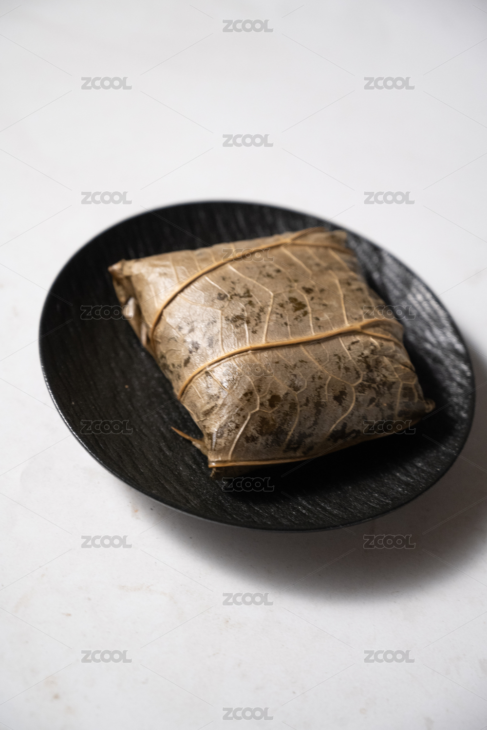 桌面上的盘子里的美味可口的荷叶糯米鸡