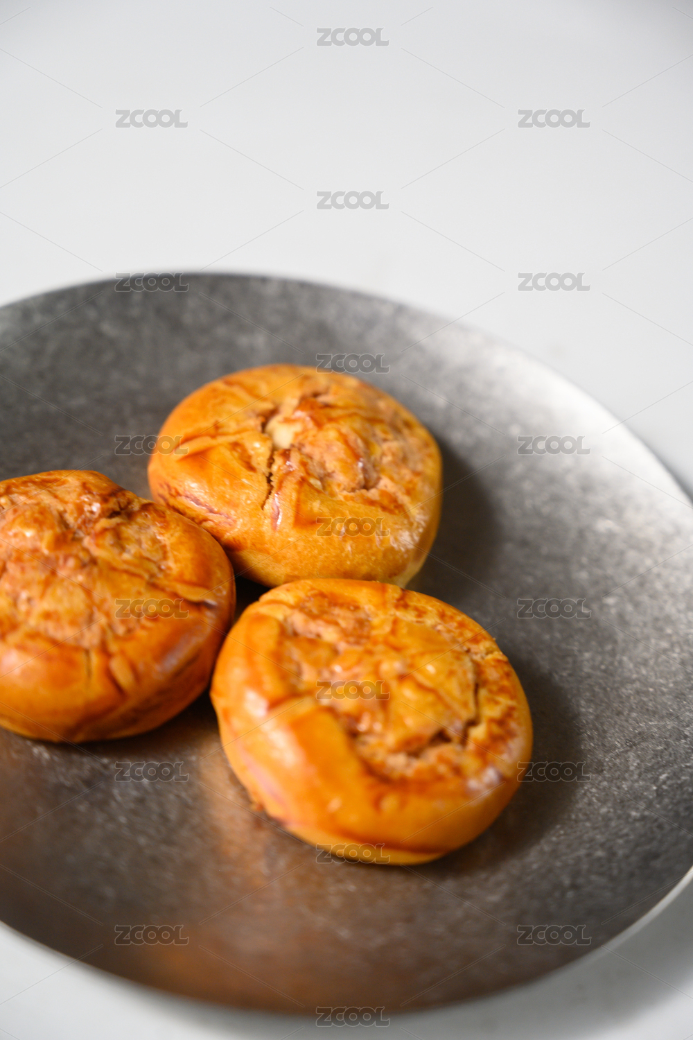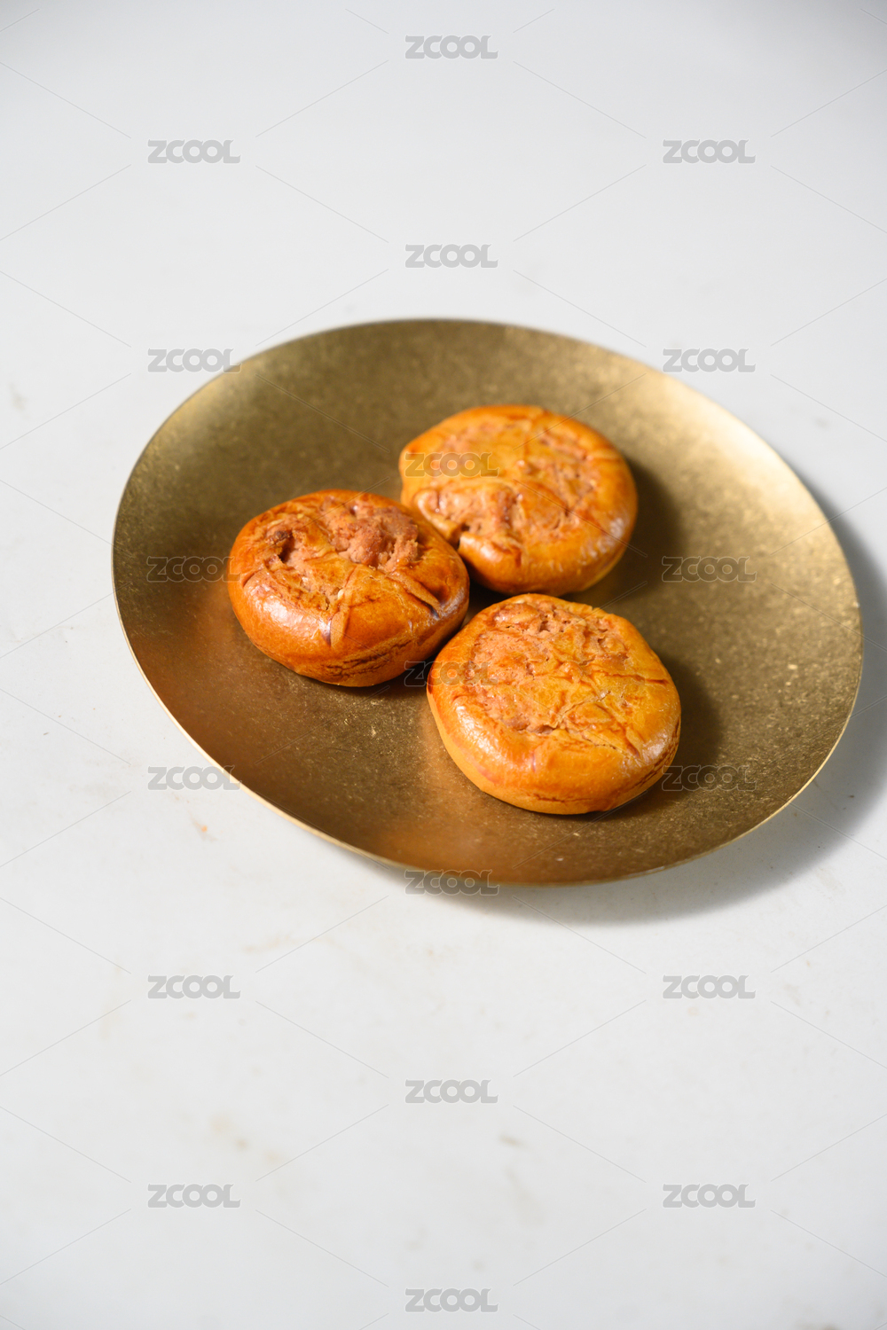 桌面上的白盘子里的美味可口的鸡仔饼
