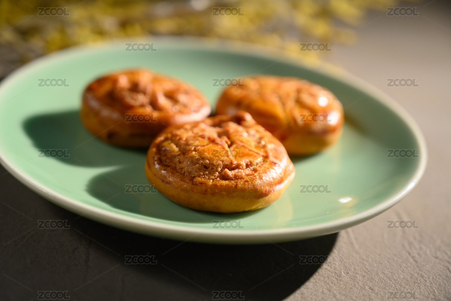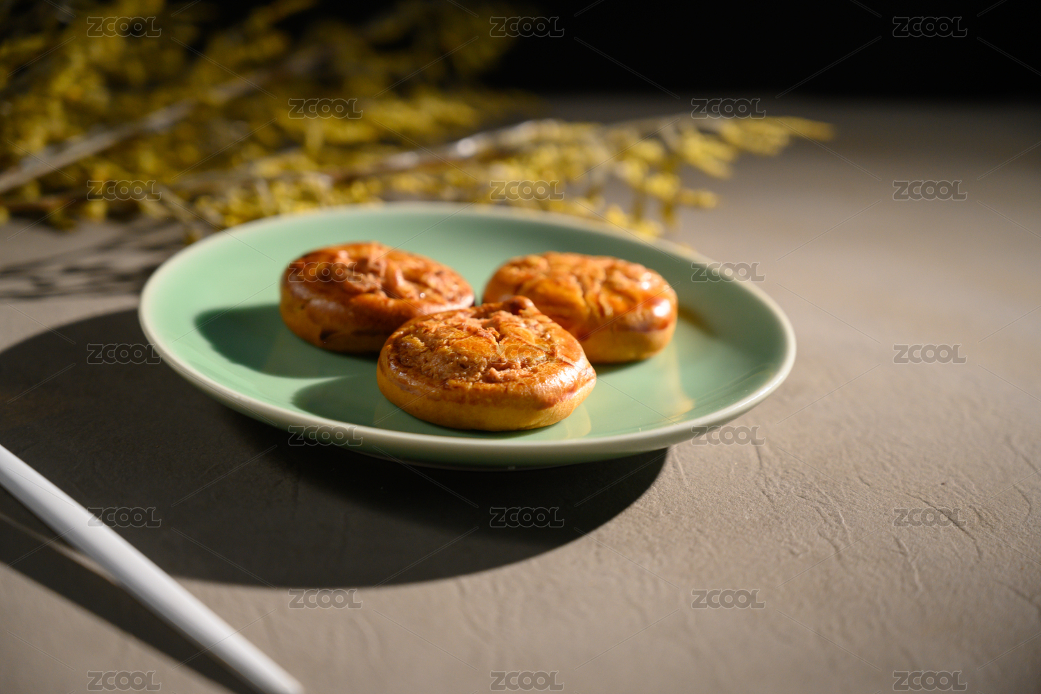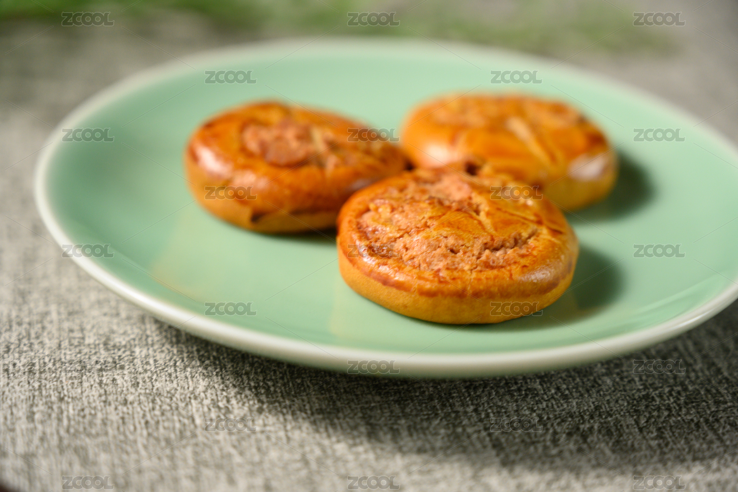 桌面上的白盘子里的美味可口的鸡仔饼