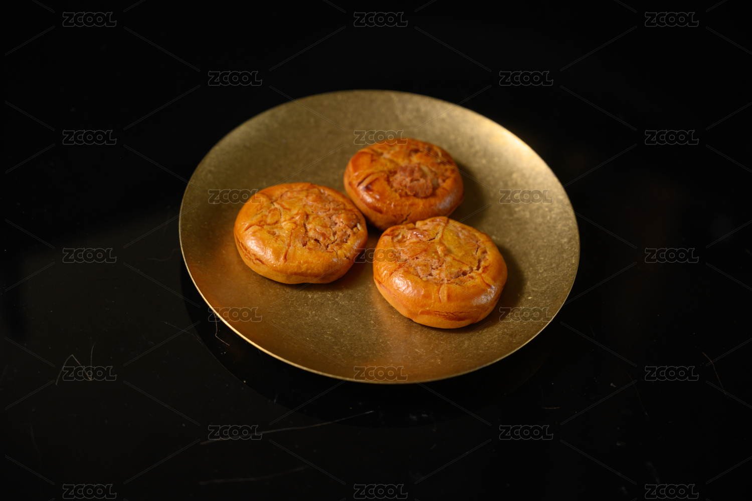桌面上的白盘子里的美味可口的鸡仔饼