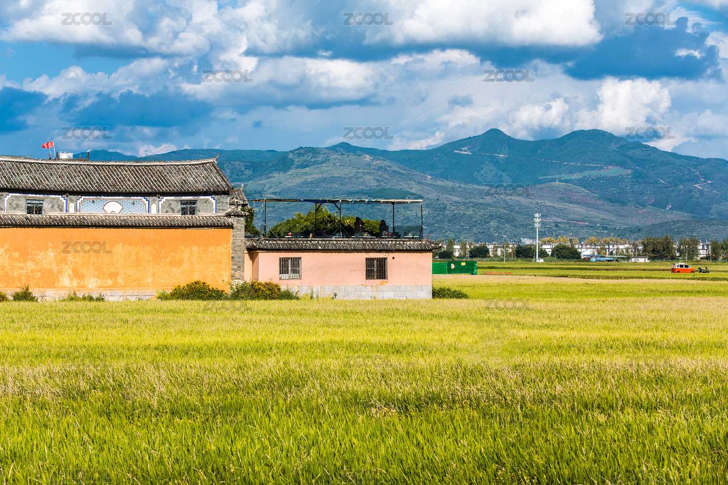 中国云南省大理市喜洲镇乡间水稻田园风光