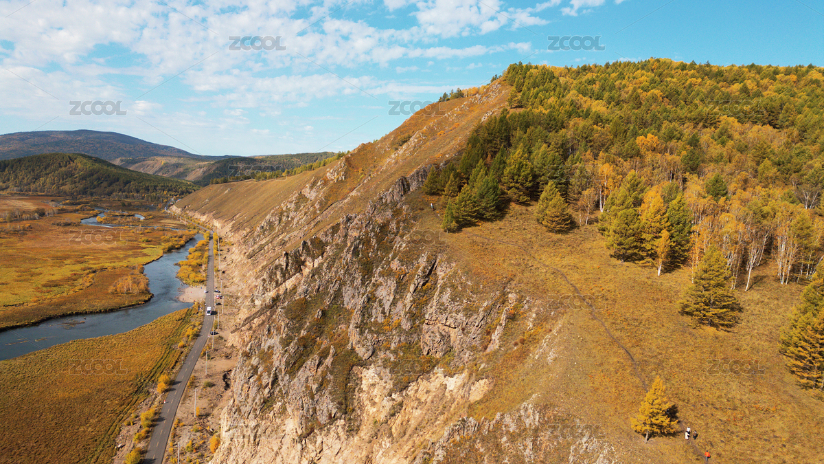 航拍中国内蒙古兴安盟阿尔山大峡谷秋色