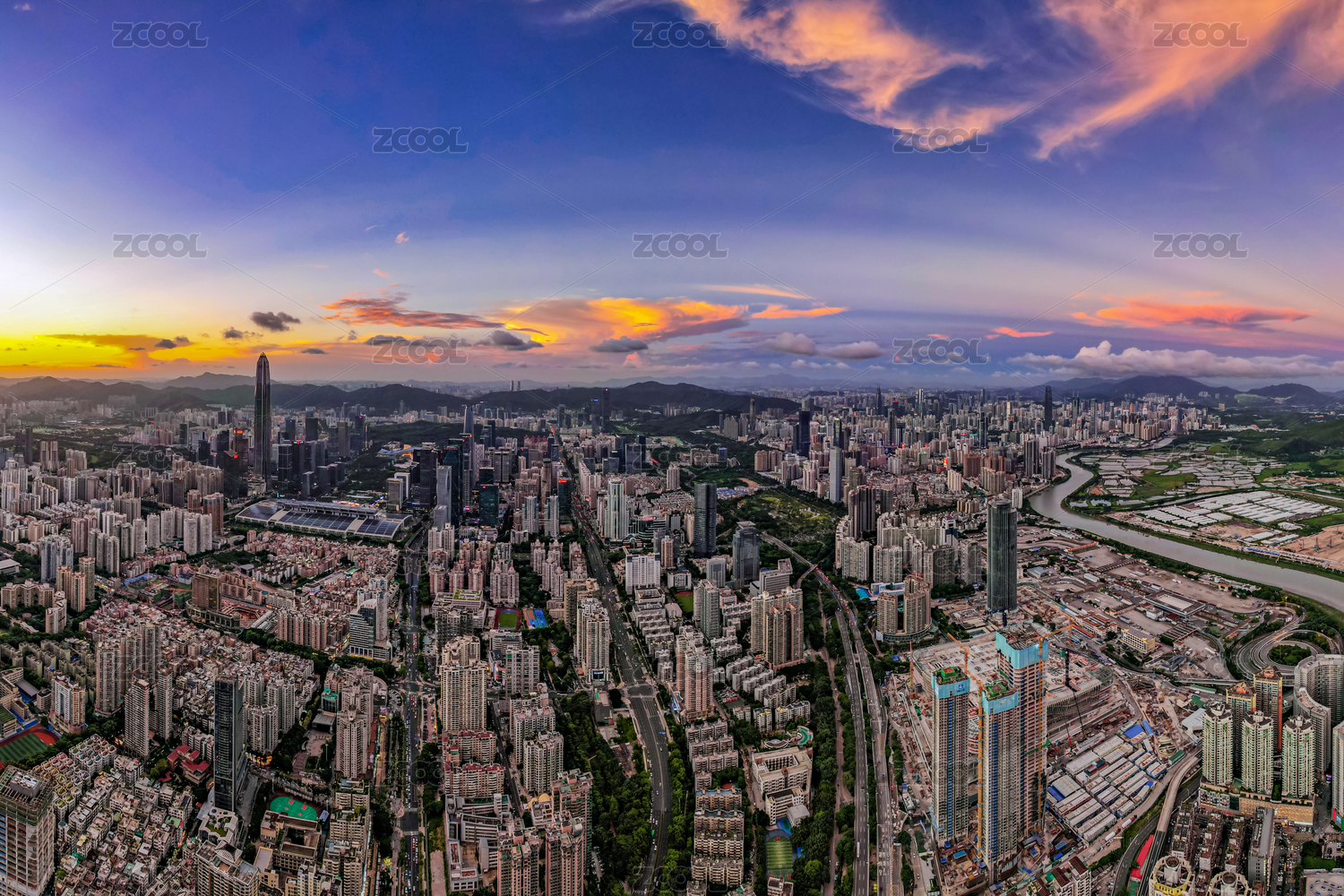 中国深圳市福田区的傍晚时分