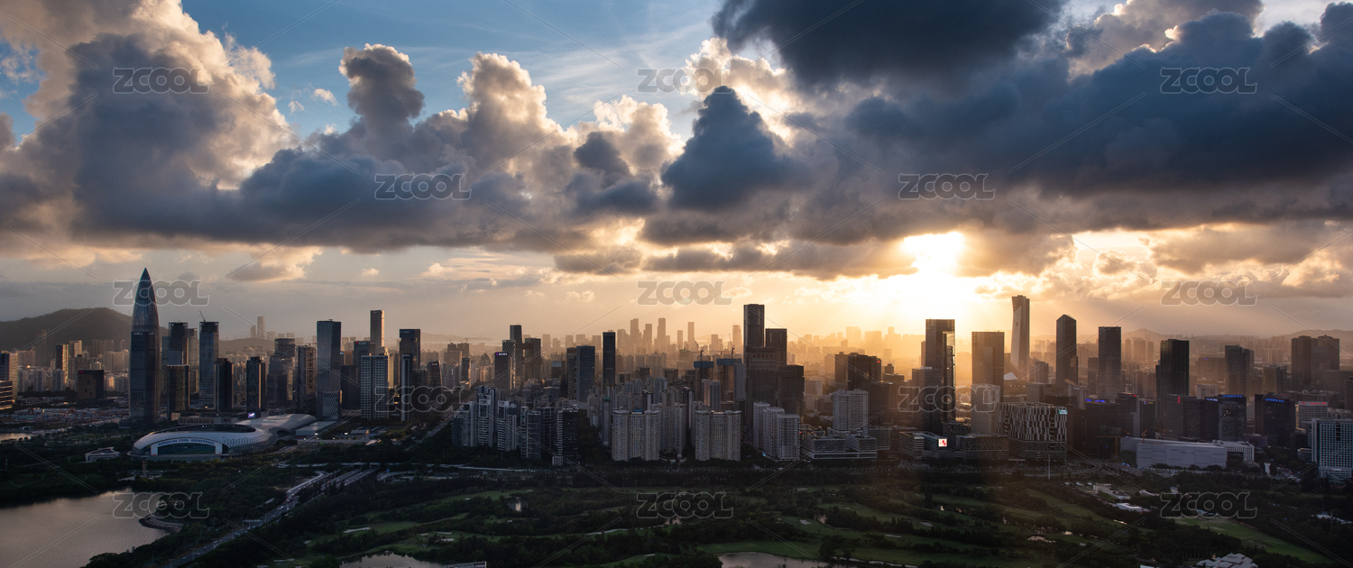 深圳高角度城市日出景色