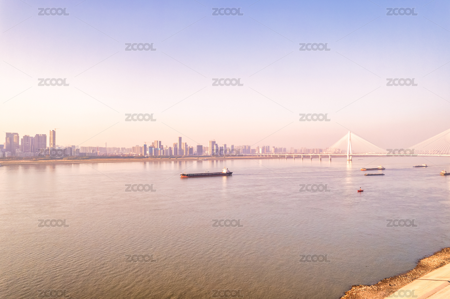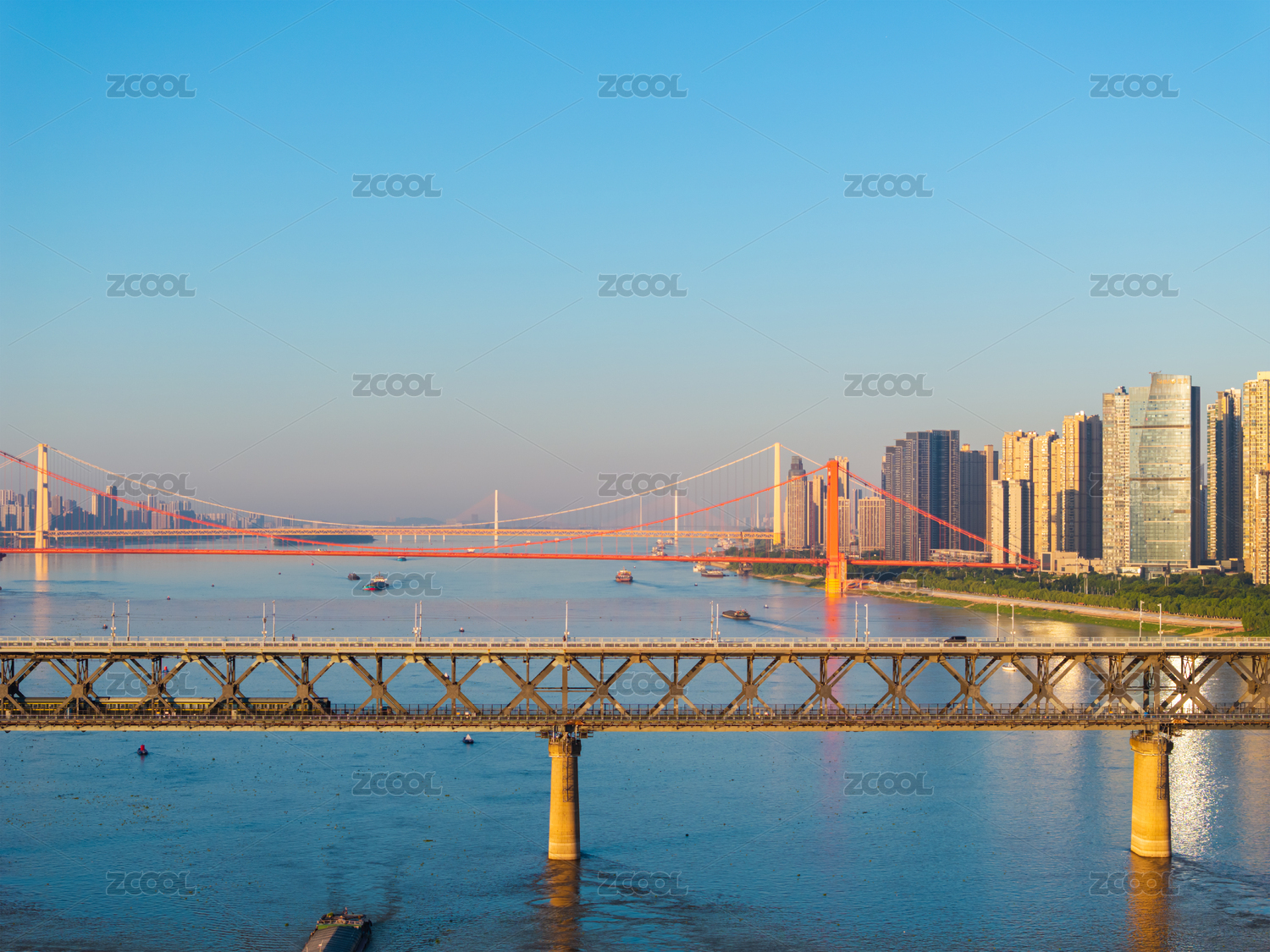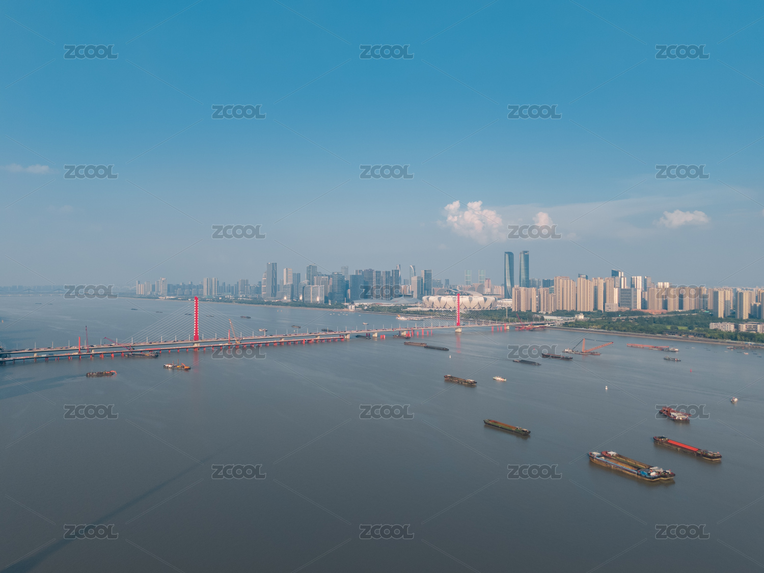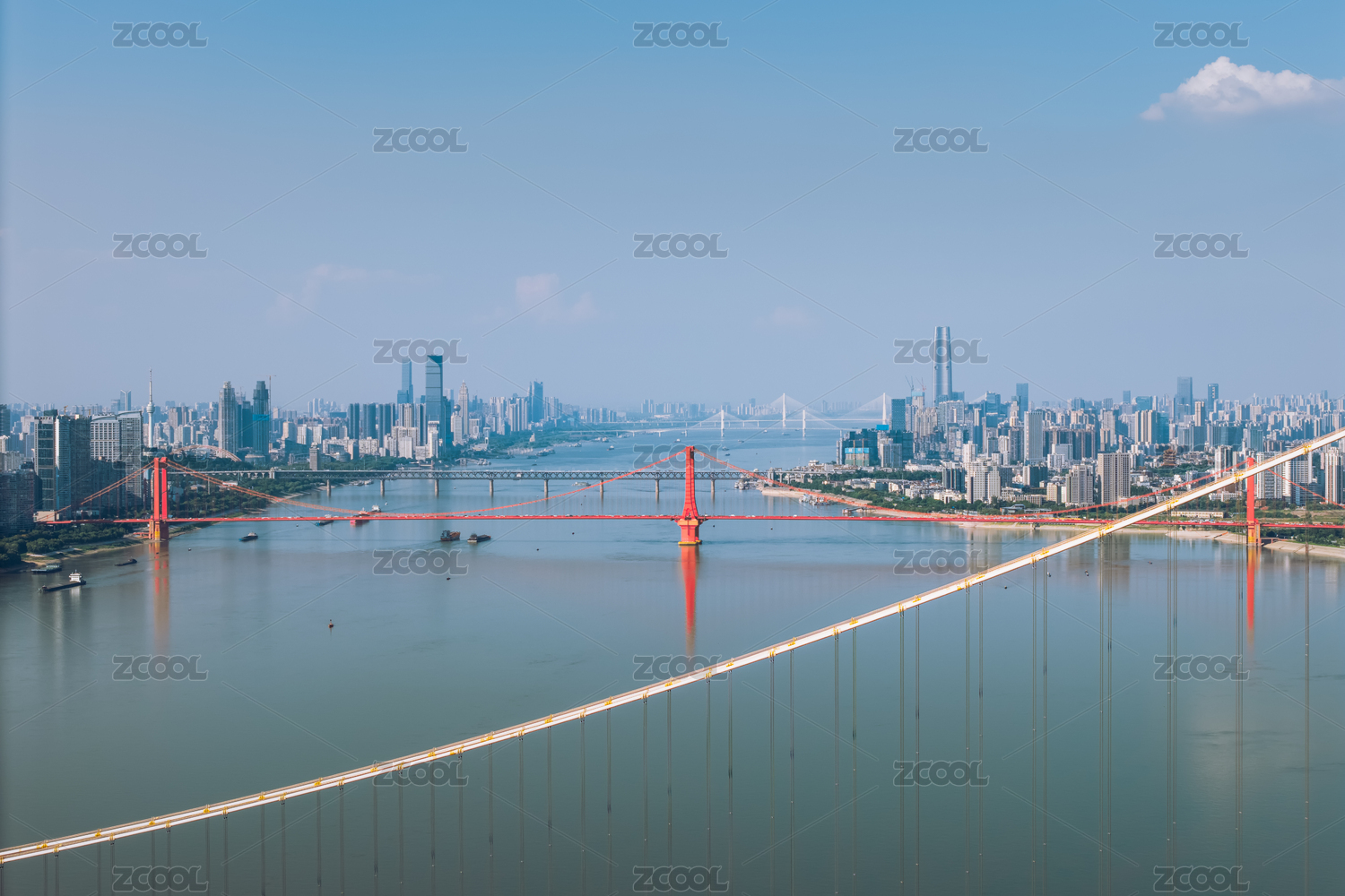 湖北省武汉市杨泗港长江大桥秋季白天航拍视