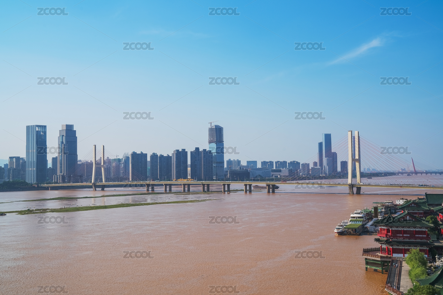 中国江西省南昌市赣江沿岸的城市建筑天际线