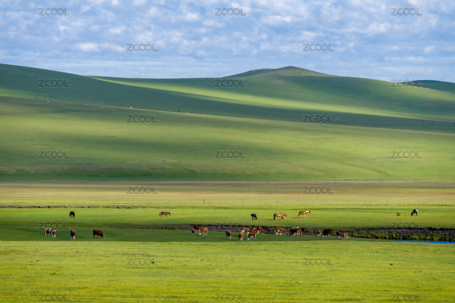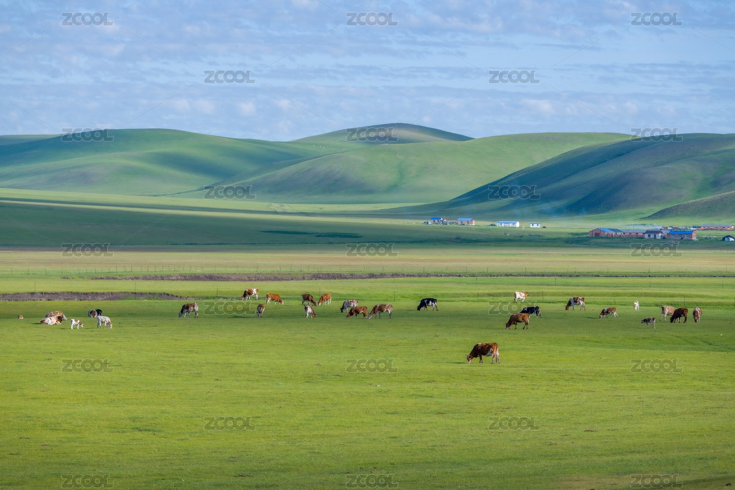 中国内蒙古夏季呼伦贝尔大草原牛群