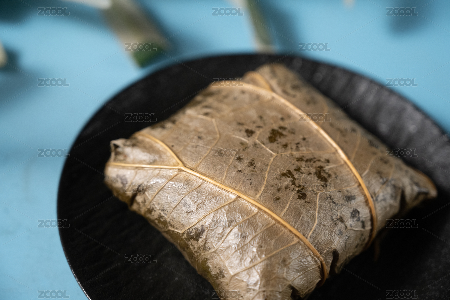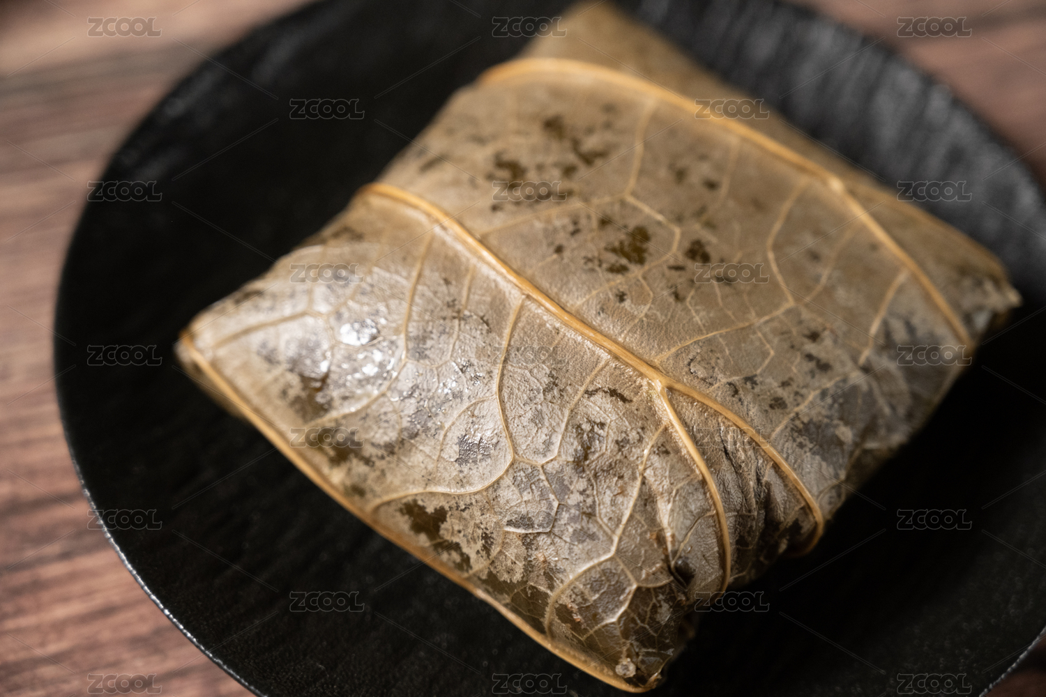 桌面上的盘子里的美味可口的荷叶糯米鸡
