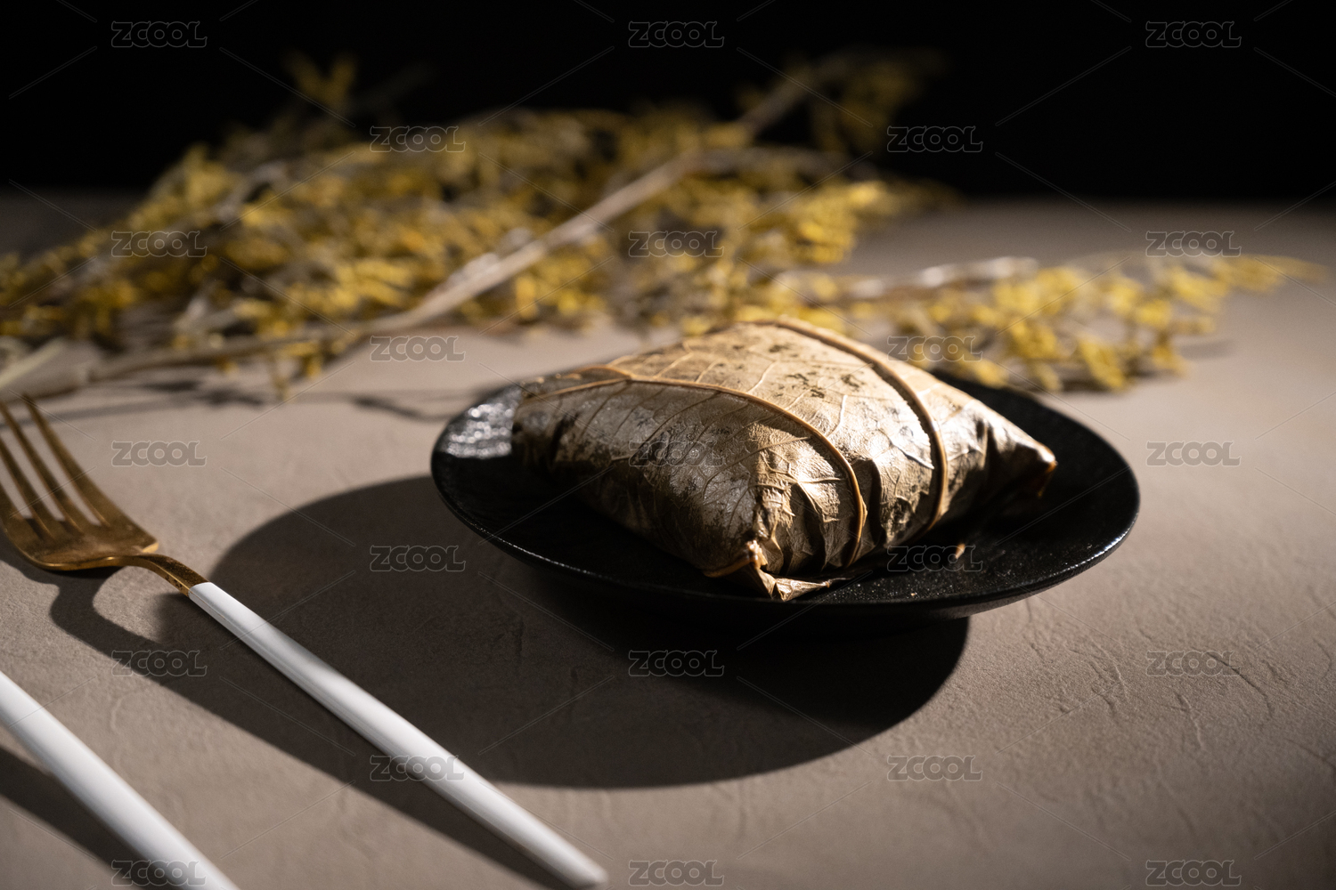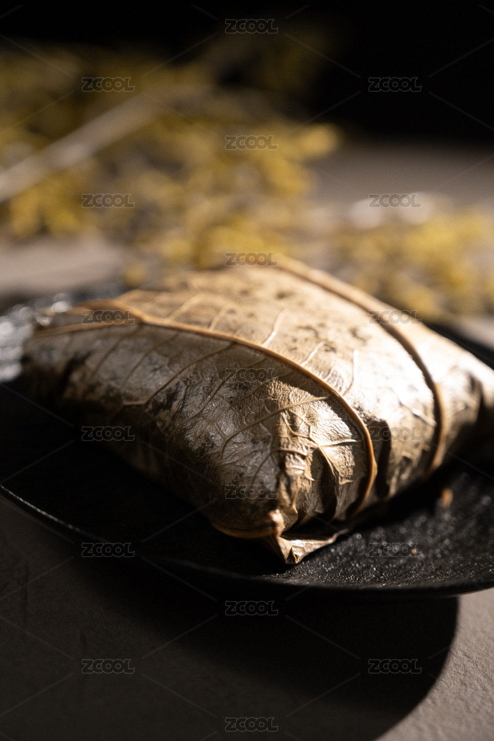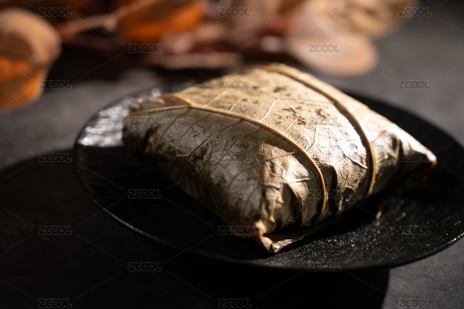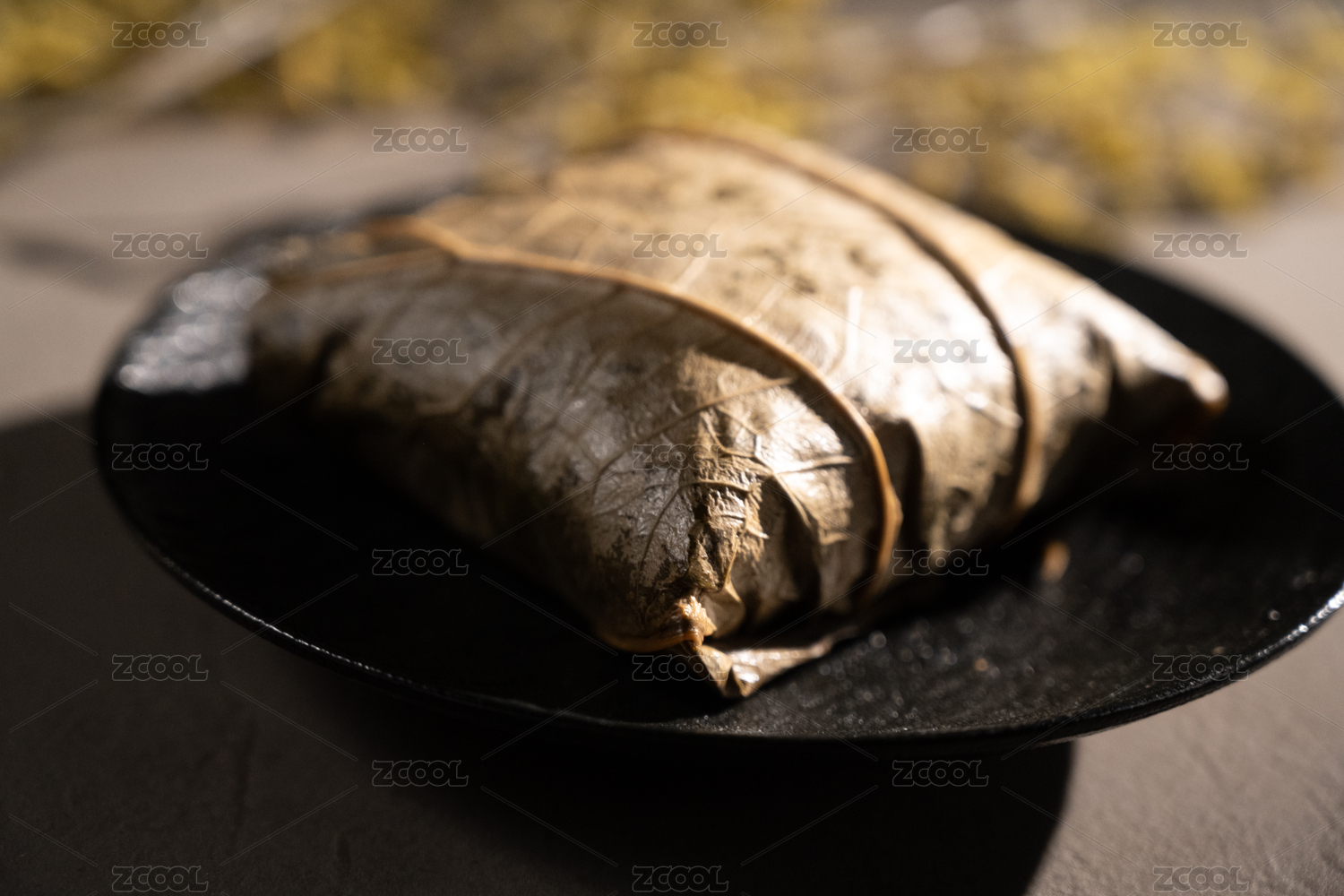 桌面上的盘子里的美味可口的荷叶糯米鸡