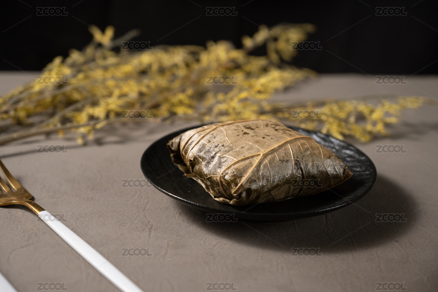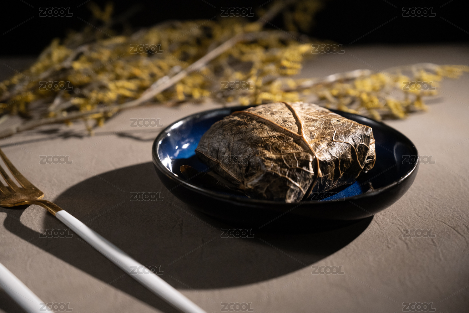 桌面上的盘子里的美味可口的荷叶糯米鸡