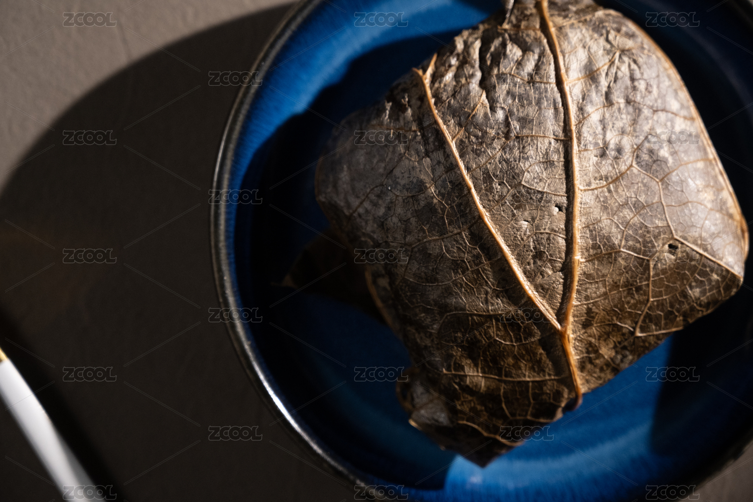 桌面上的盘子里的美味可口的荷叶糯米鸡