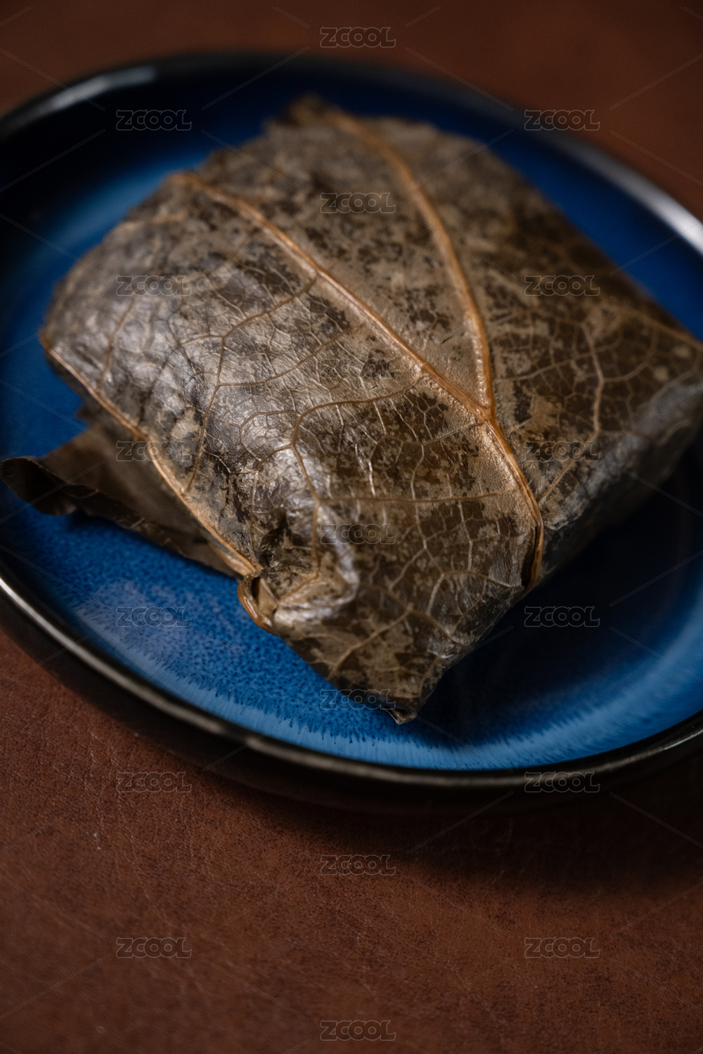 桌面上的盘子里的美味可口的荷叶糯米鸡