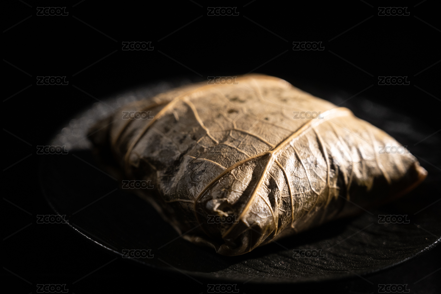 桌面上的盘子里的美味可口的荷叶糯米鸡
