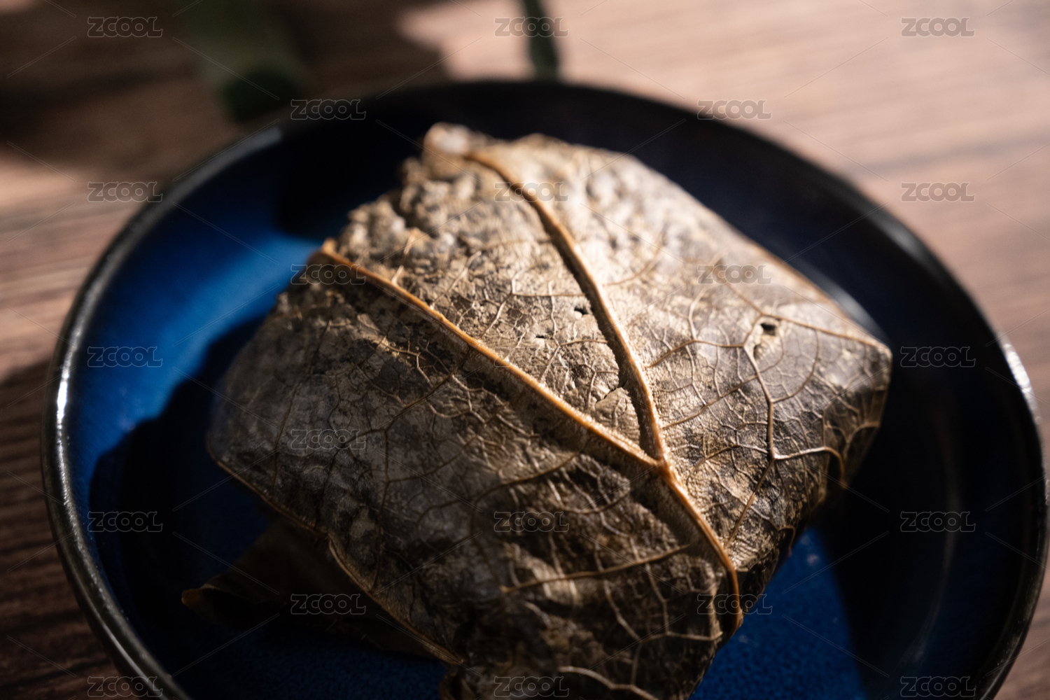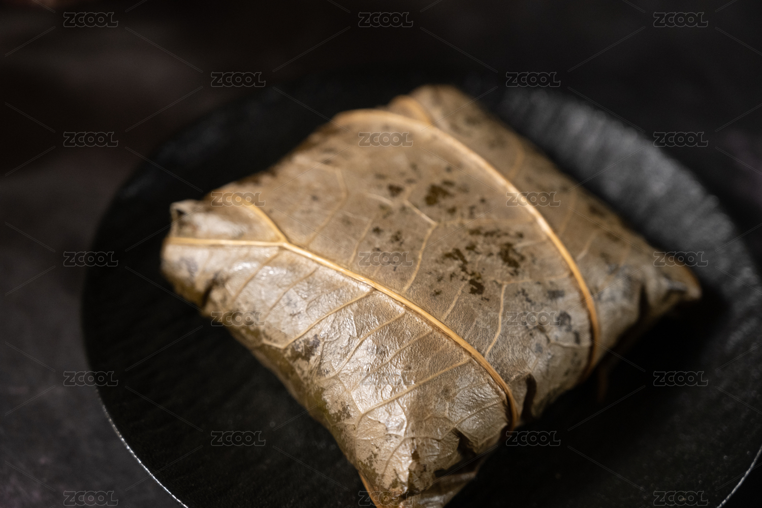 桌面上的盘子里的美味可口的荷叶糯米鸡