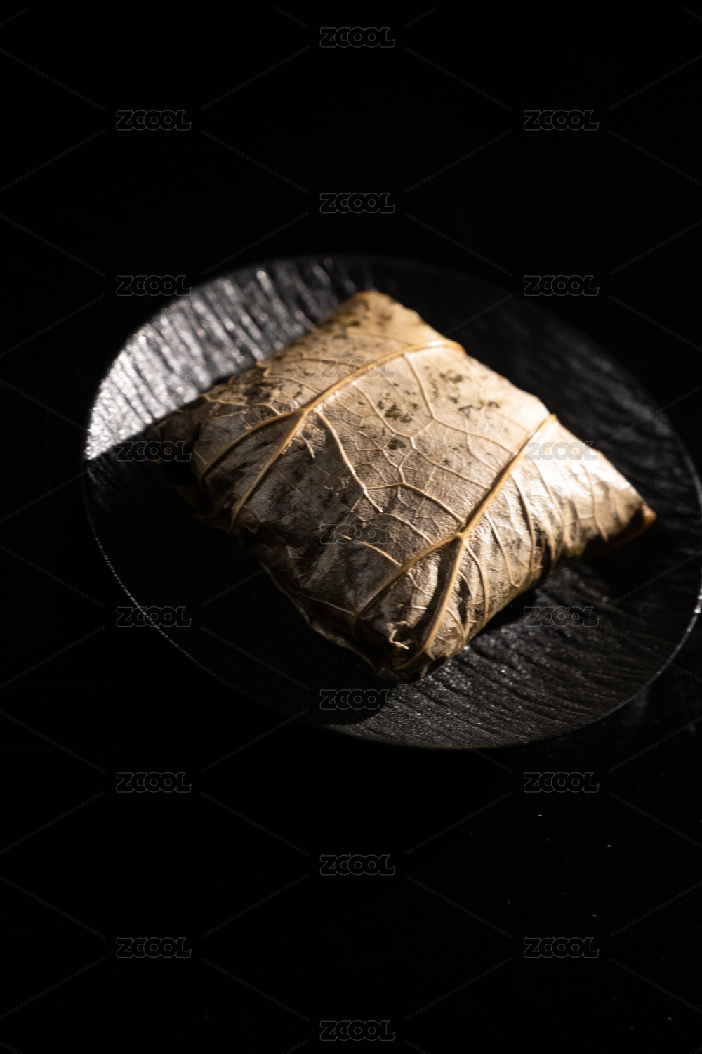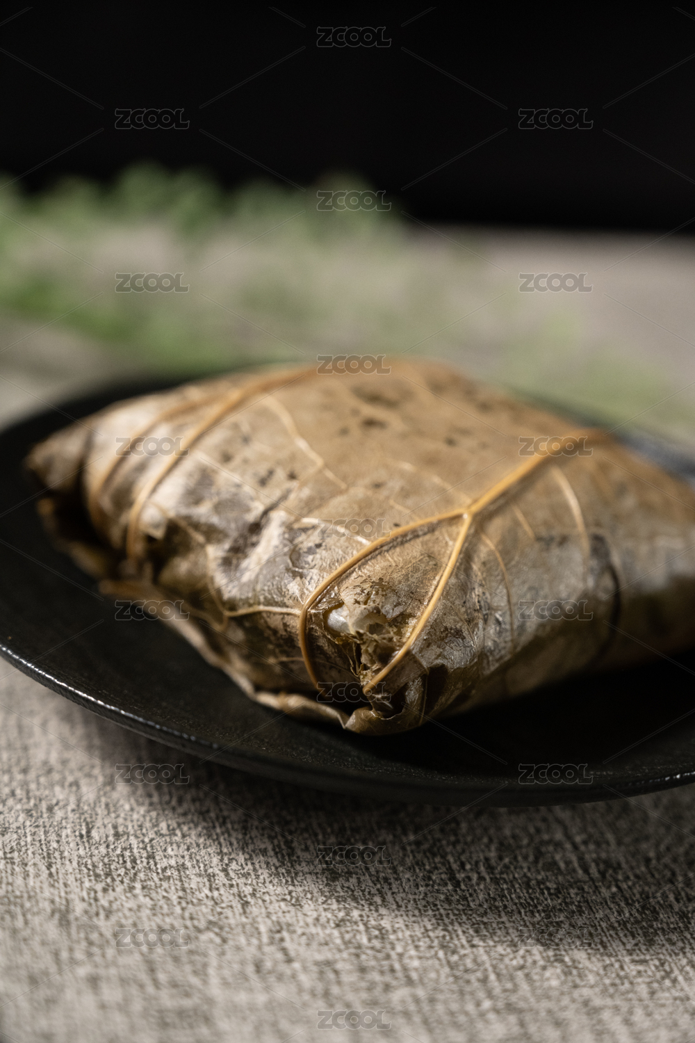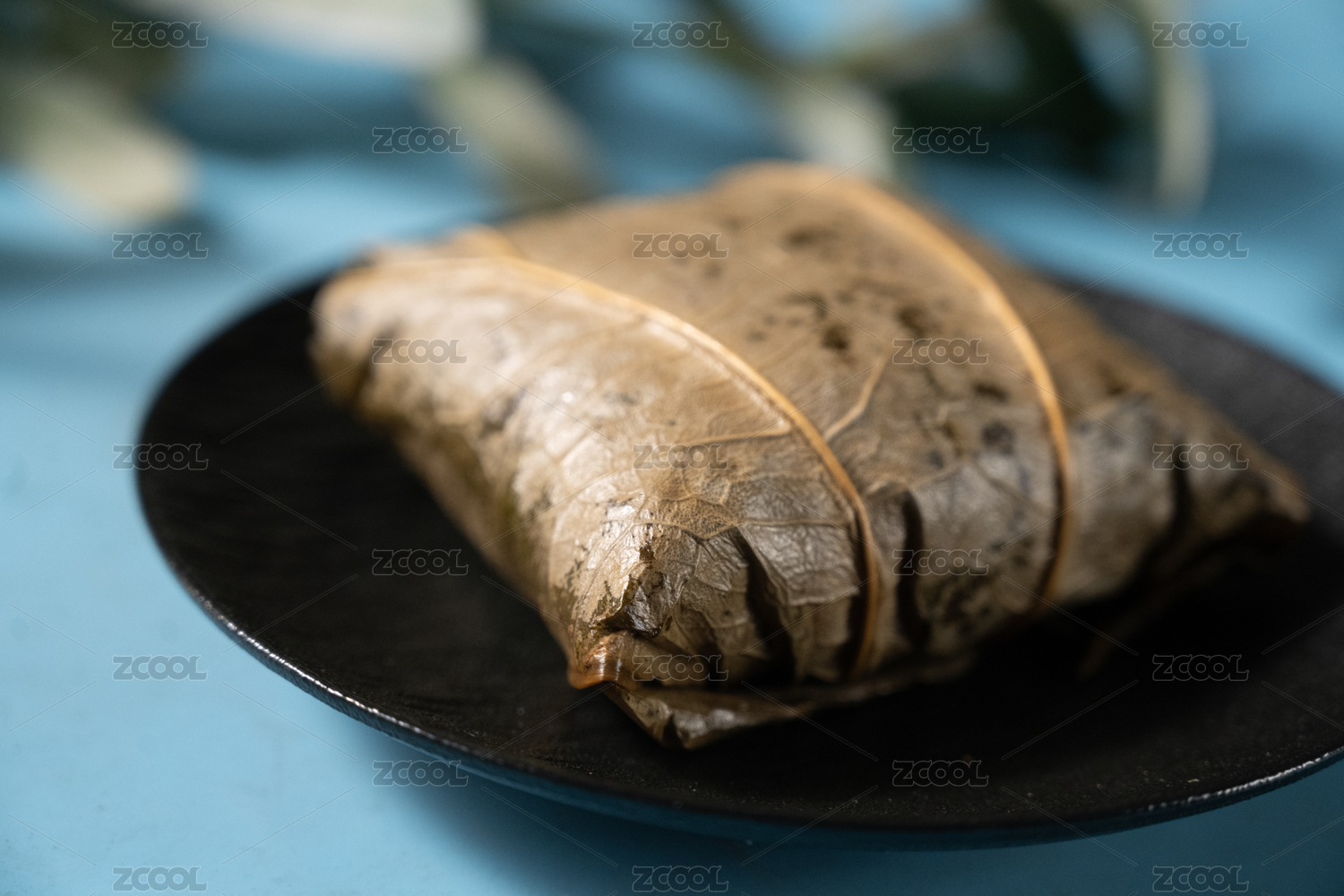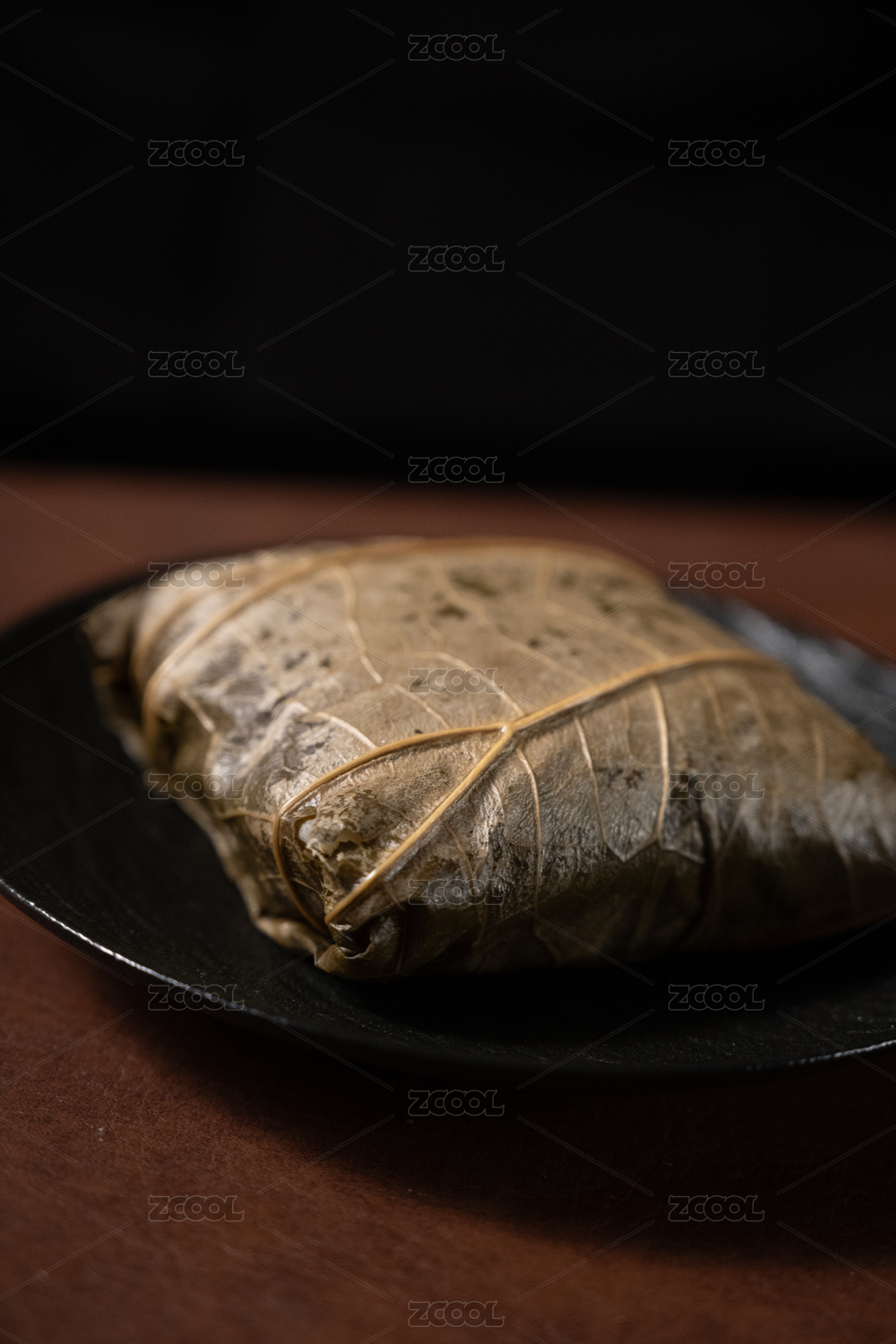 桌面上的盘子里的美味可口的荷叶糯米鸡