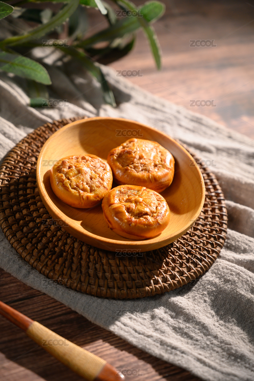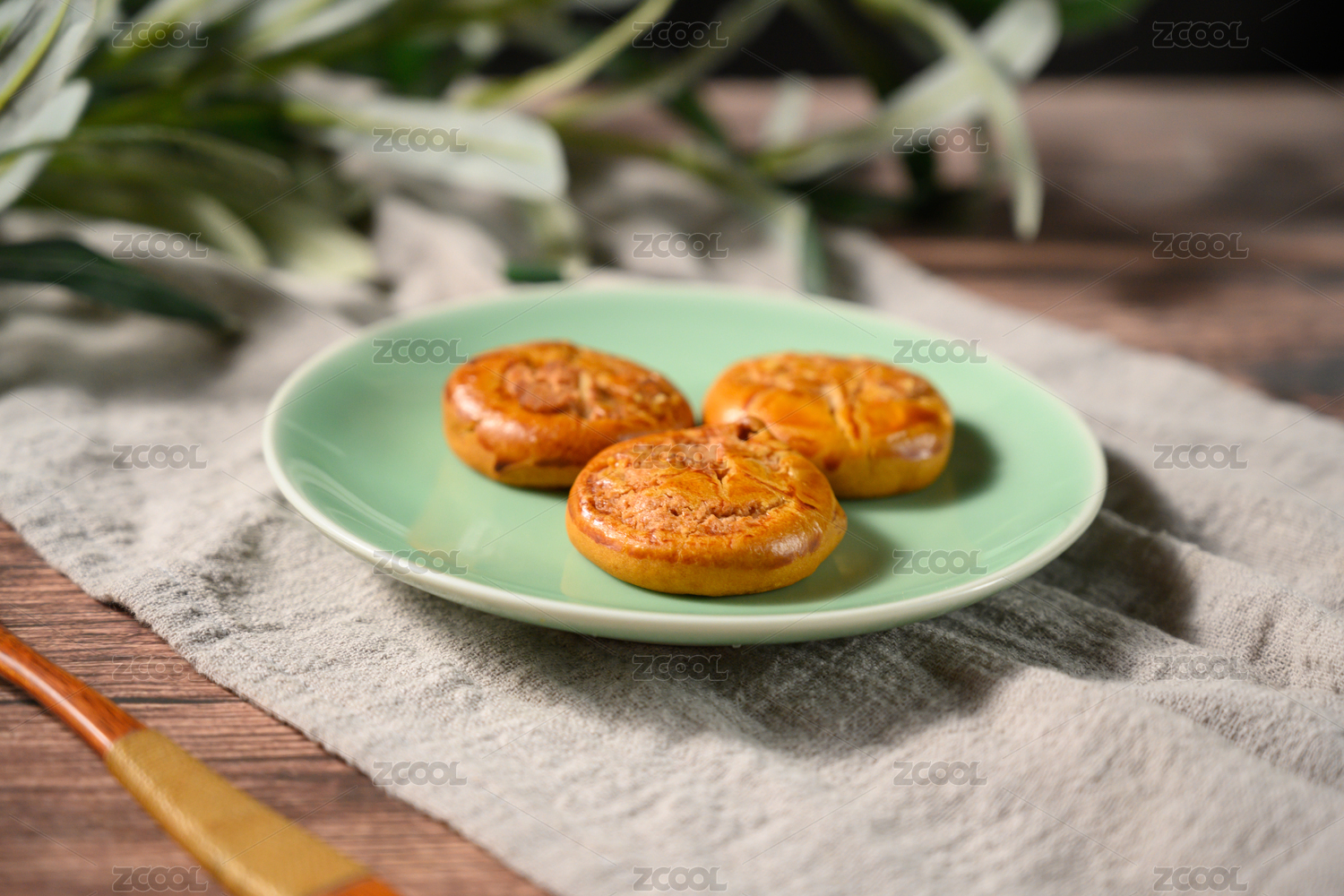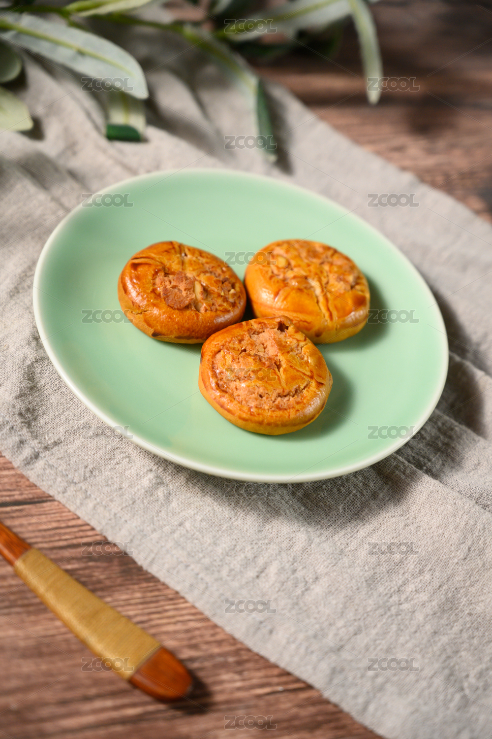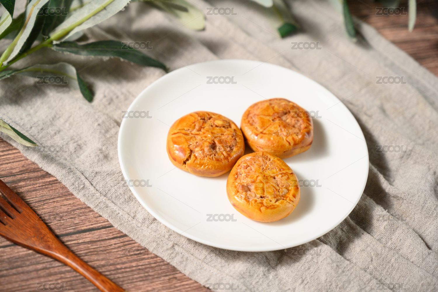 桌面上的白盘子里的美味可口的鸡仔饼