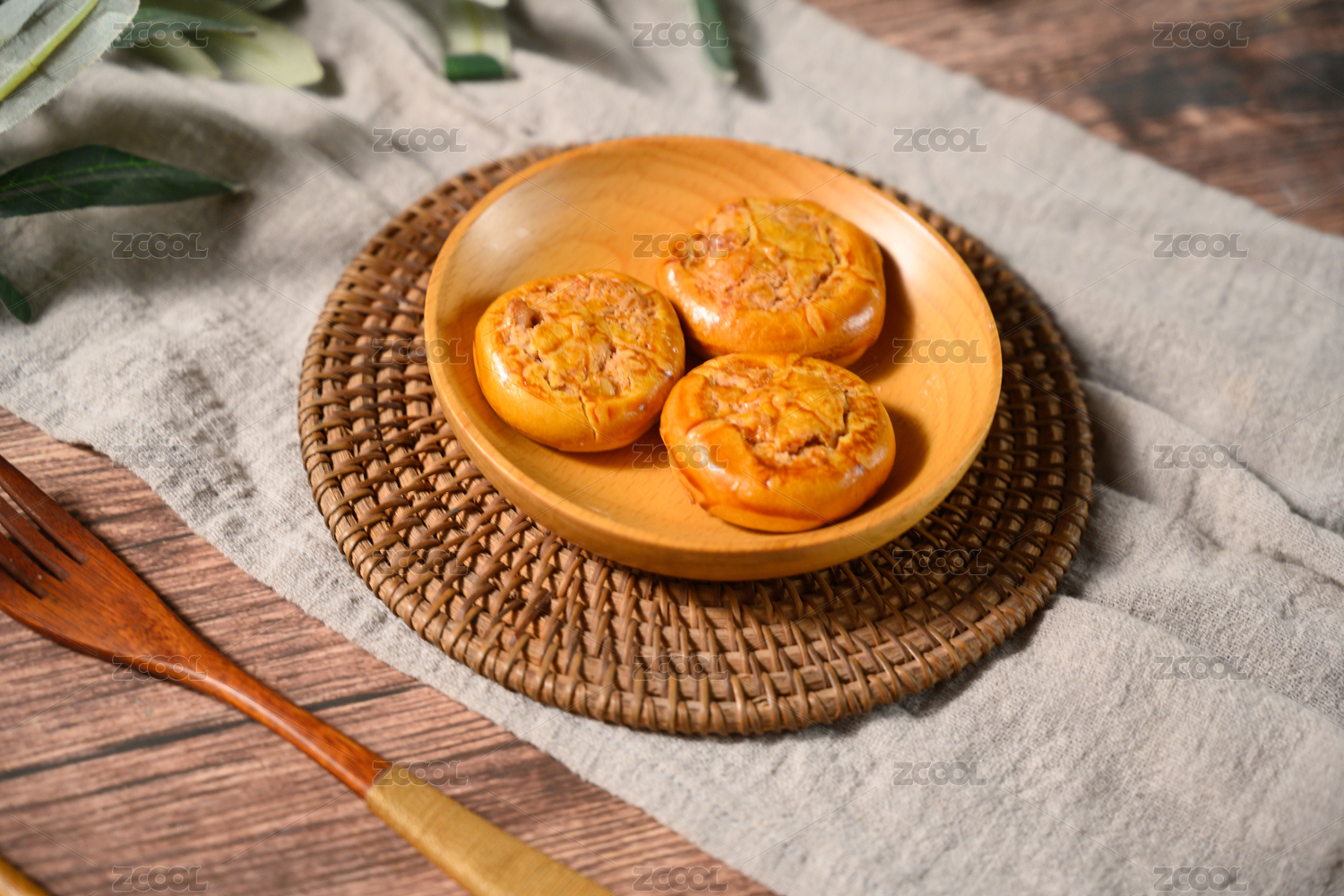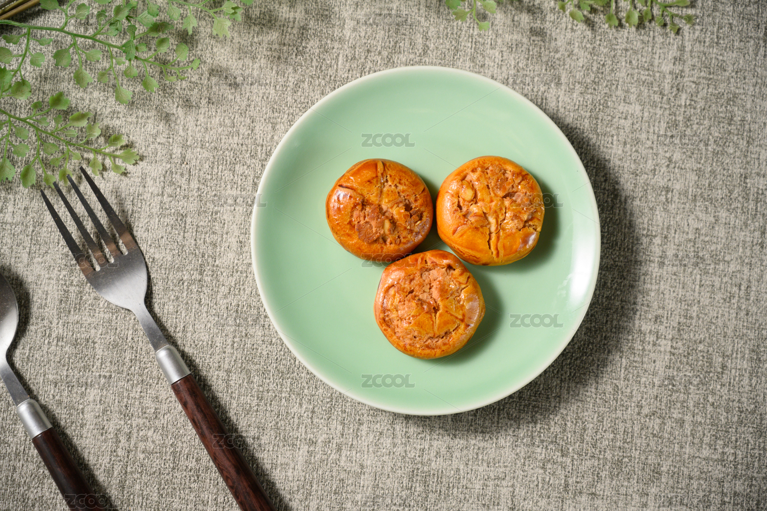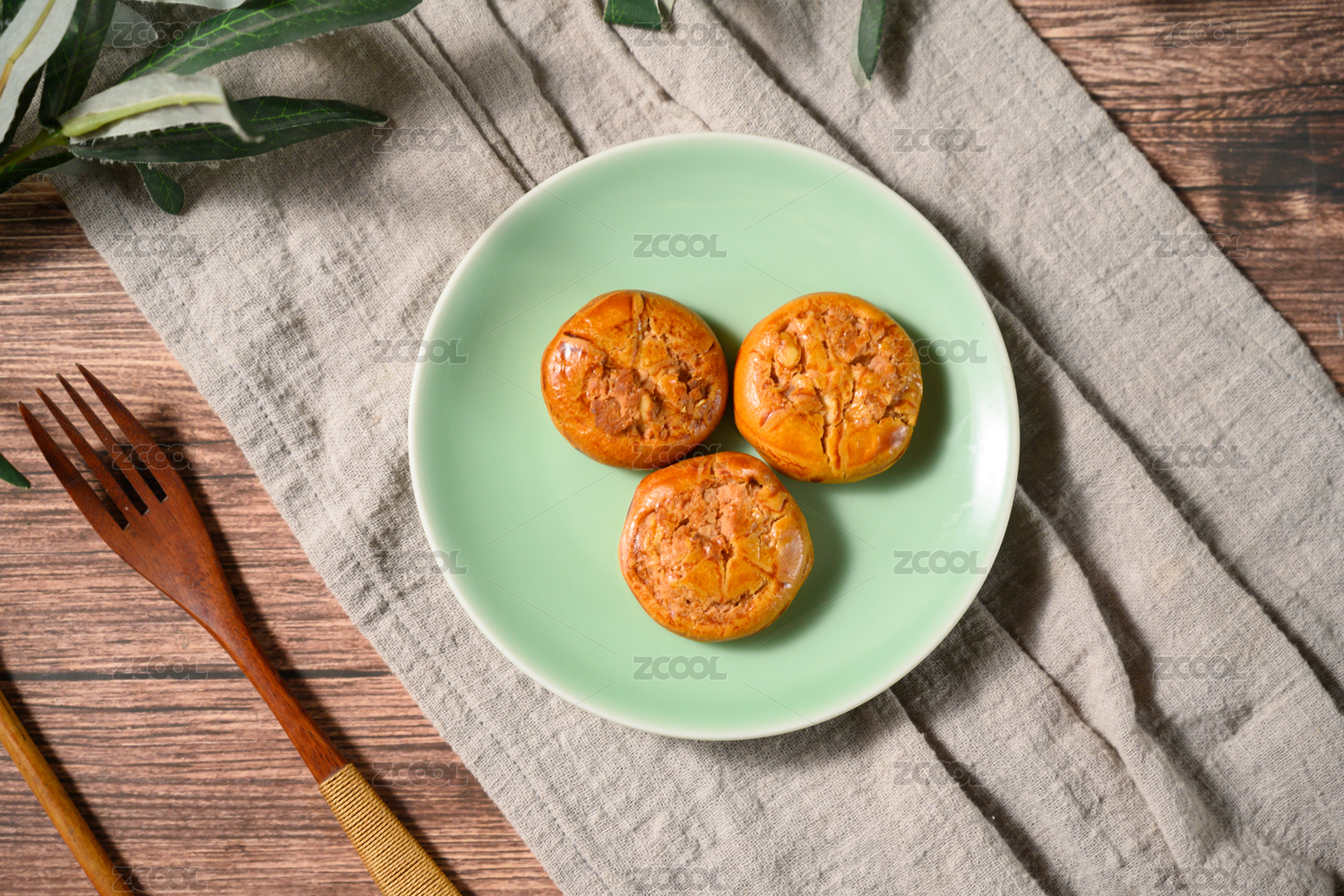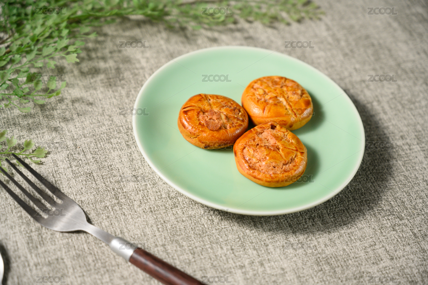 桌面上的白盘子里的美味可口的鸡仔饼