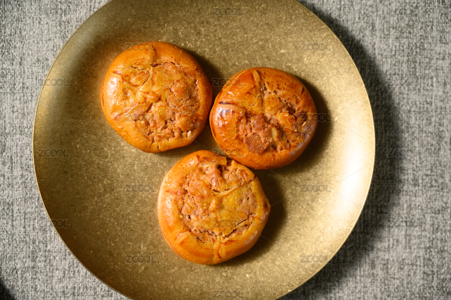 桌面上的白盘子里的美味可口的鸡仔饼