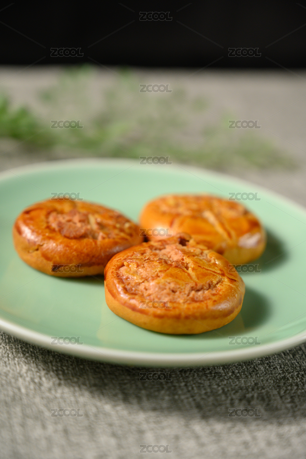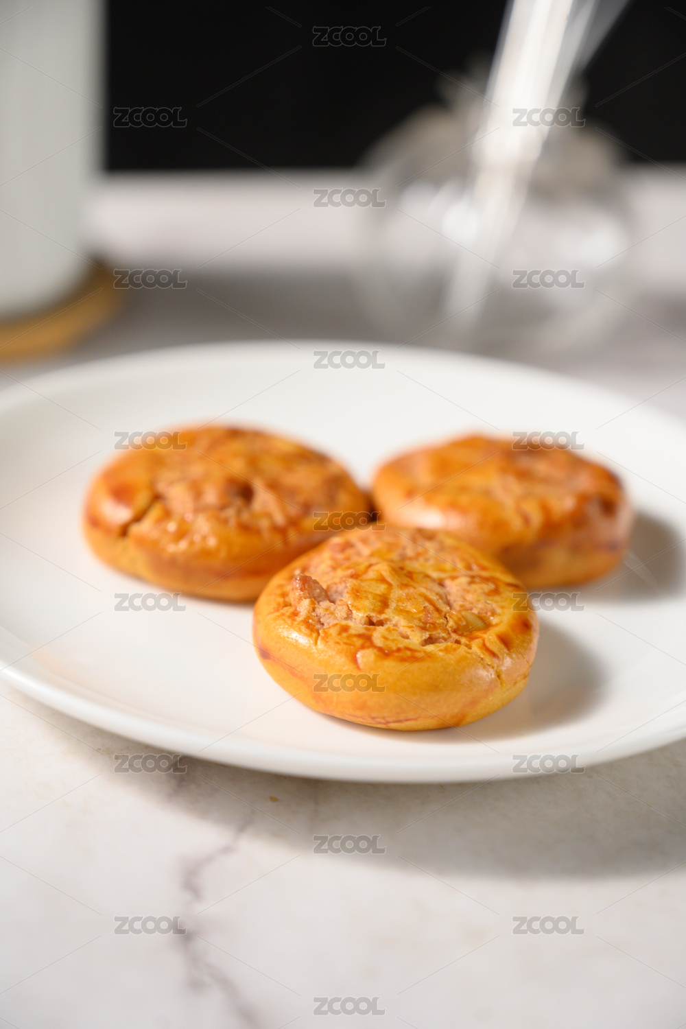 桌面上的白盘子里的美味可口的鸡仔饼