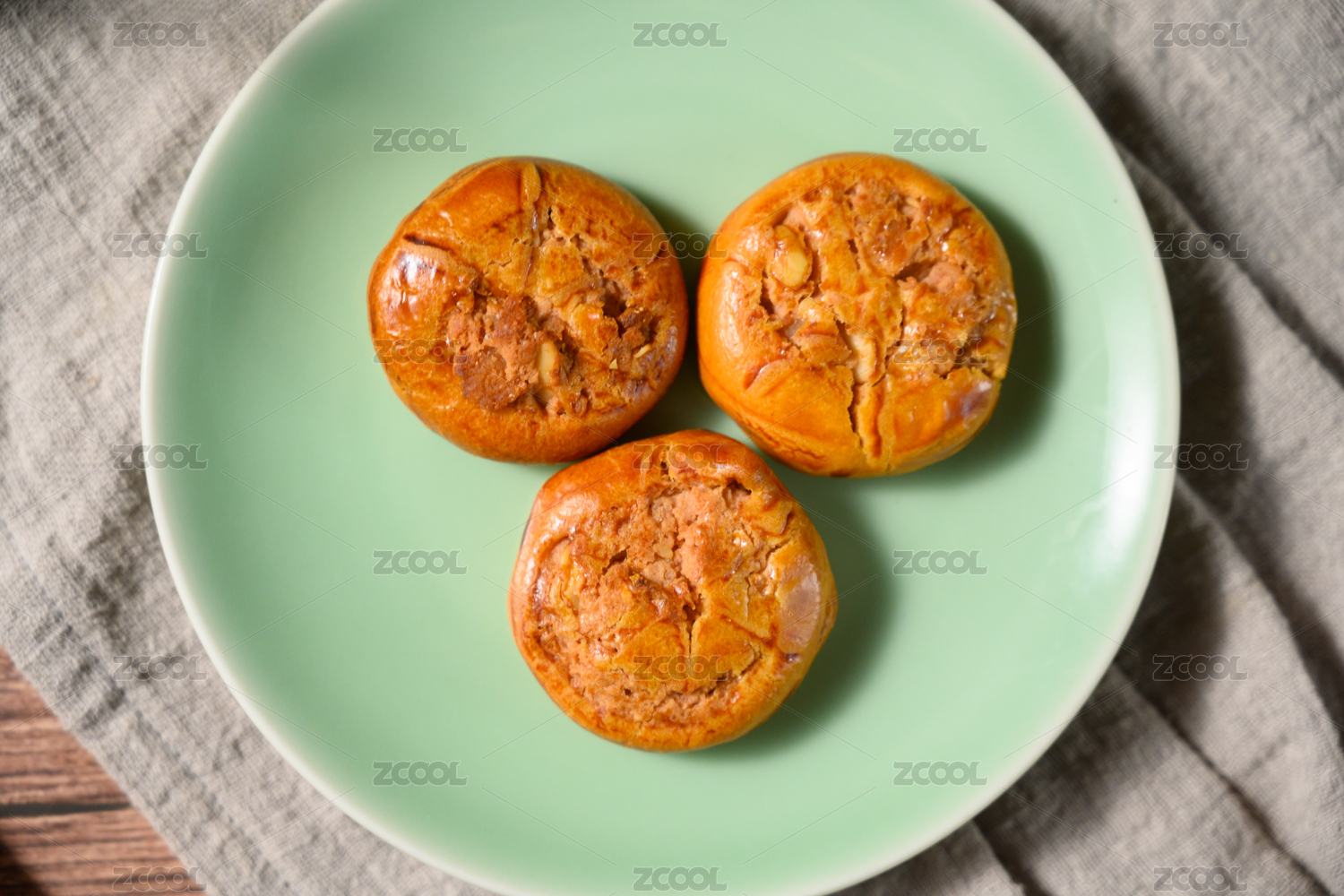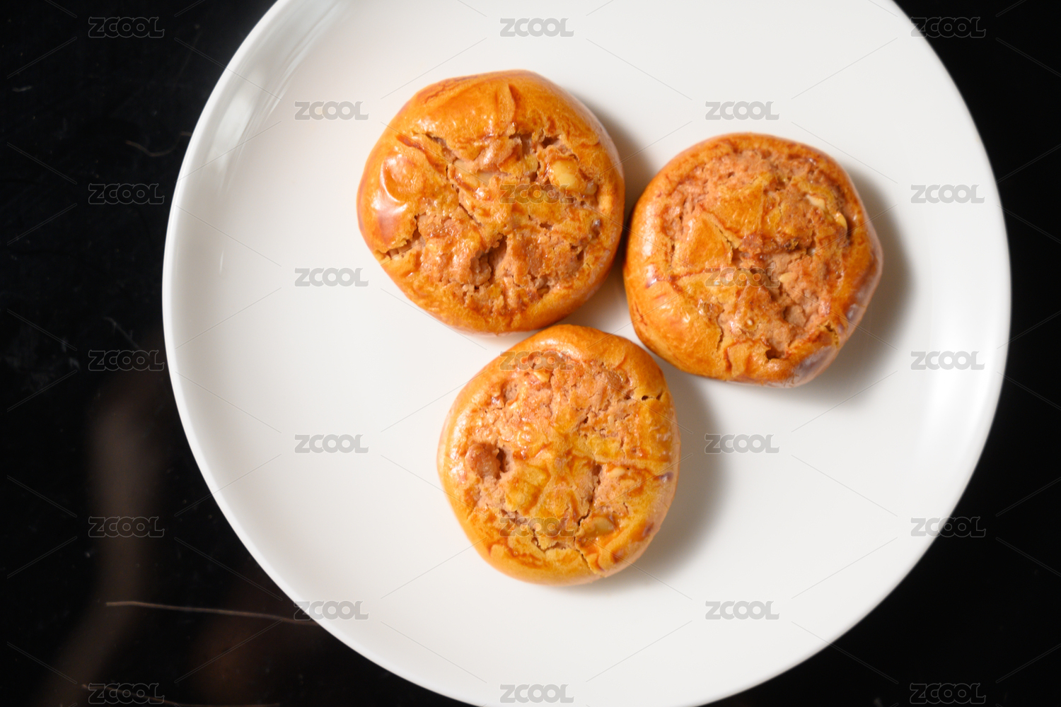 桌面上的白盘子里的美味可口的鸡仔饼