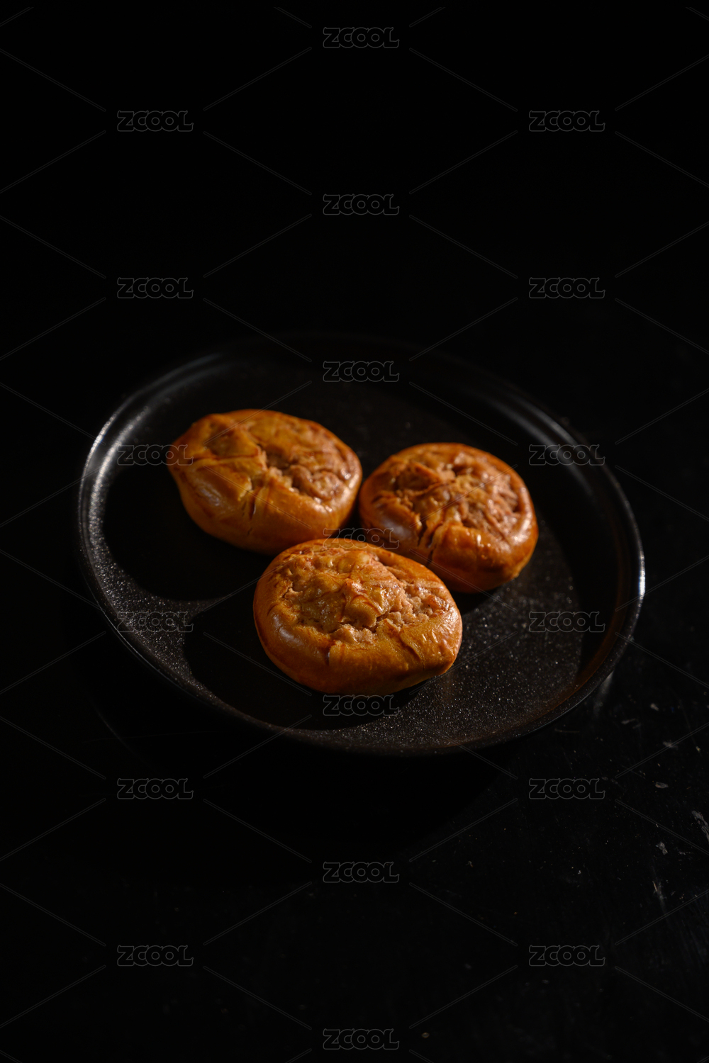 桌面上的白盘子里的美味可口的鸡仔饼