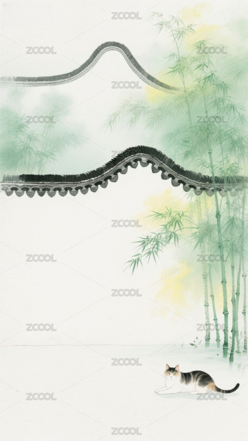 竹林小猫与屋檐