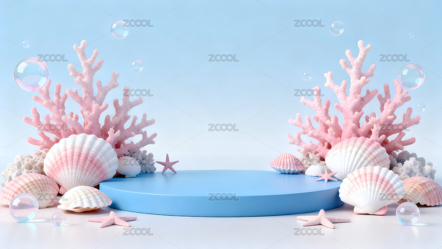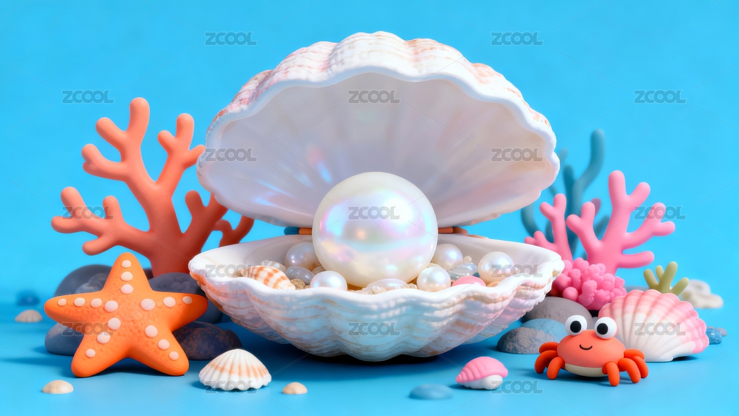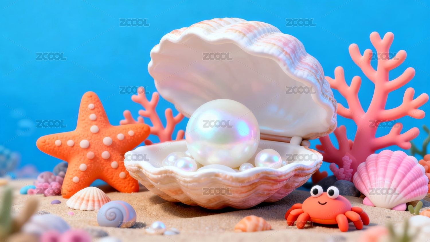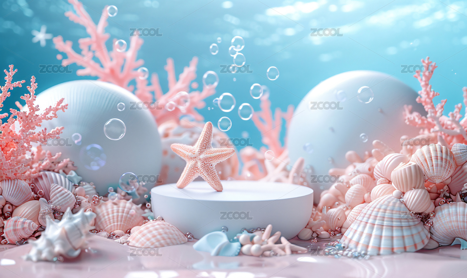 主视觉,商业,壁纸,场景,贝壳,珍珠,海洋风,展示,海星,珊瑚