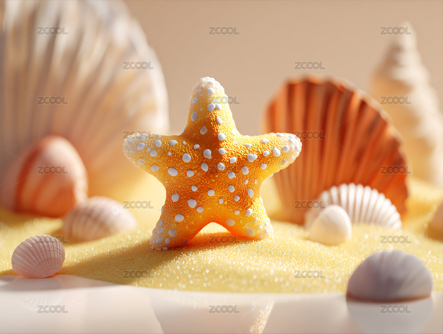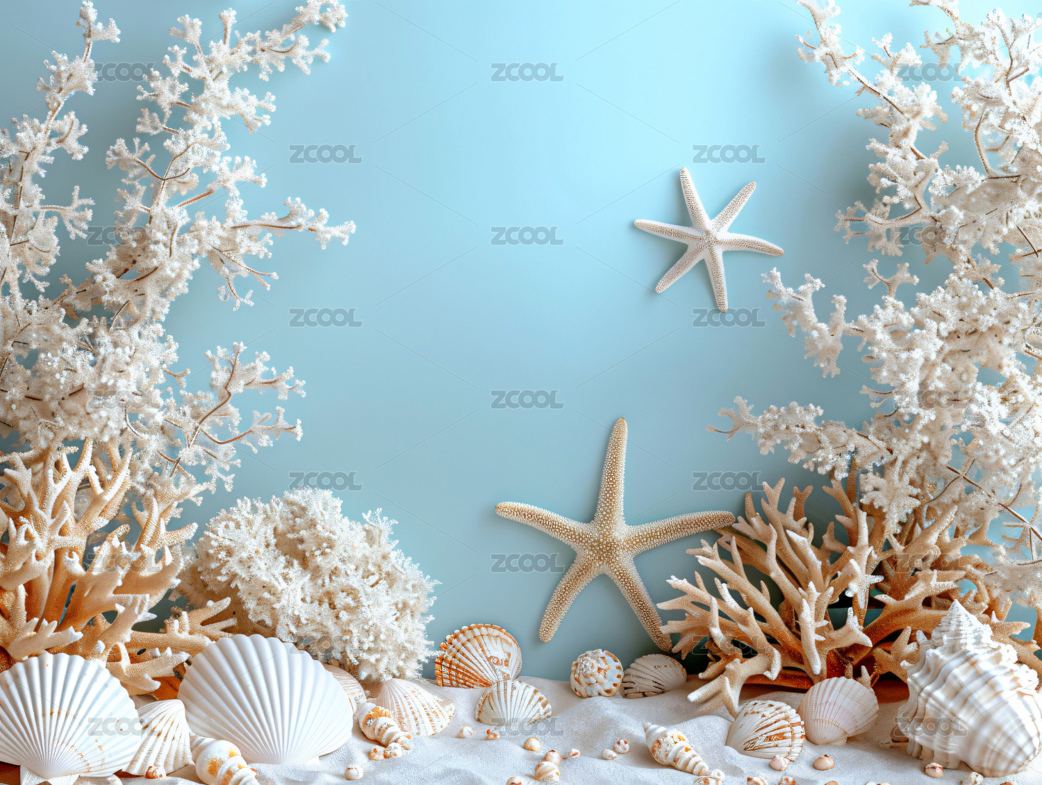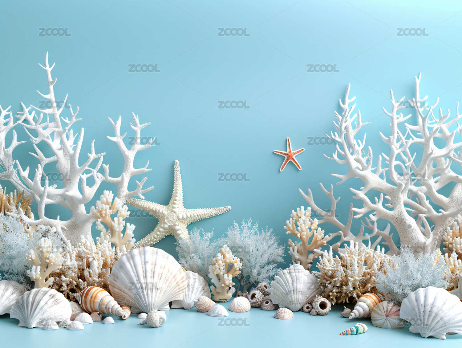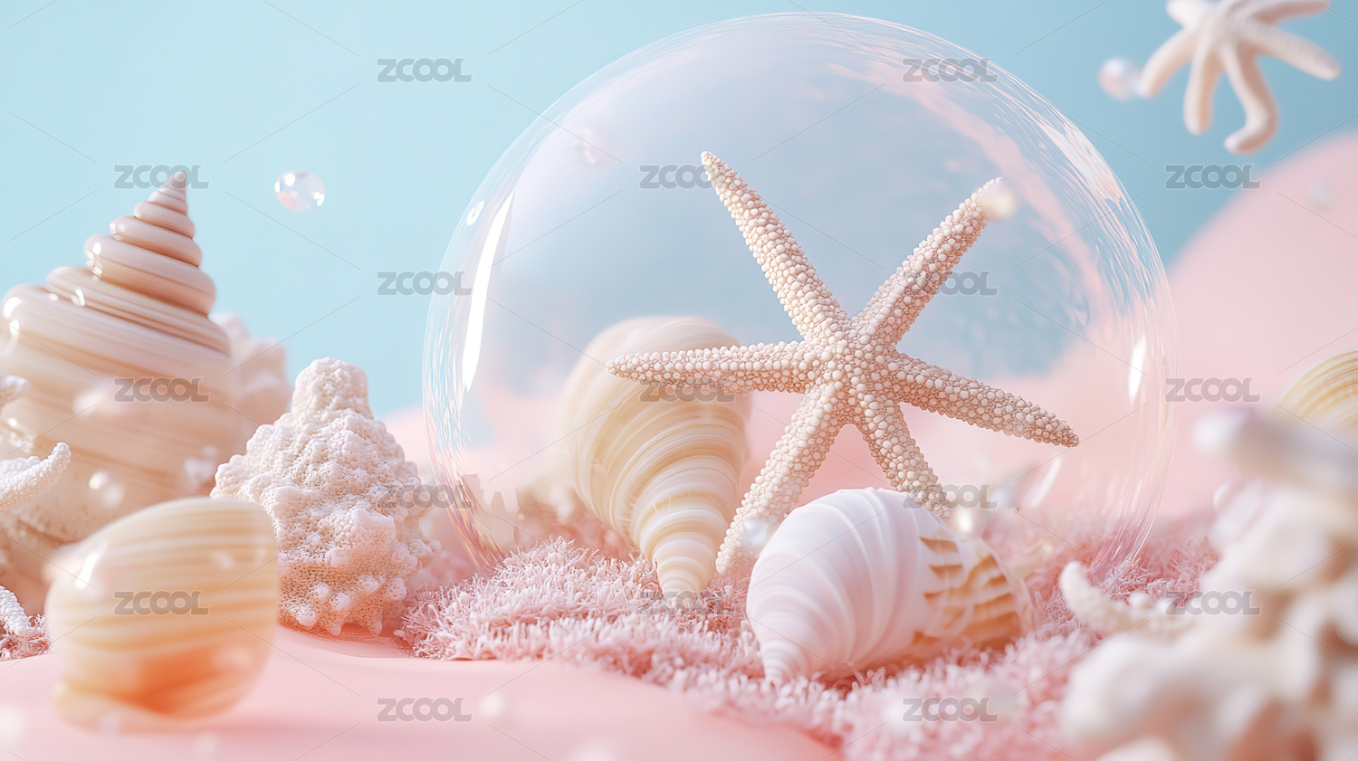 主视觉,商业,壁纸,场景,贝壳,珍珠,海洋风,展示,海星,珊瑚