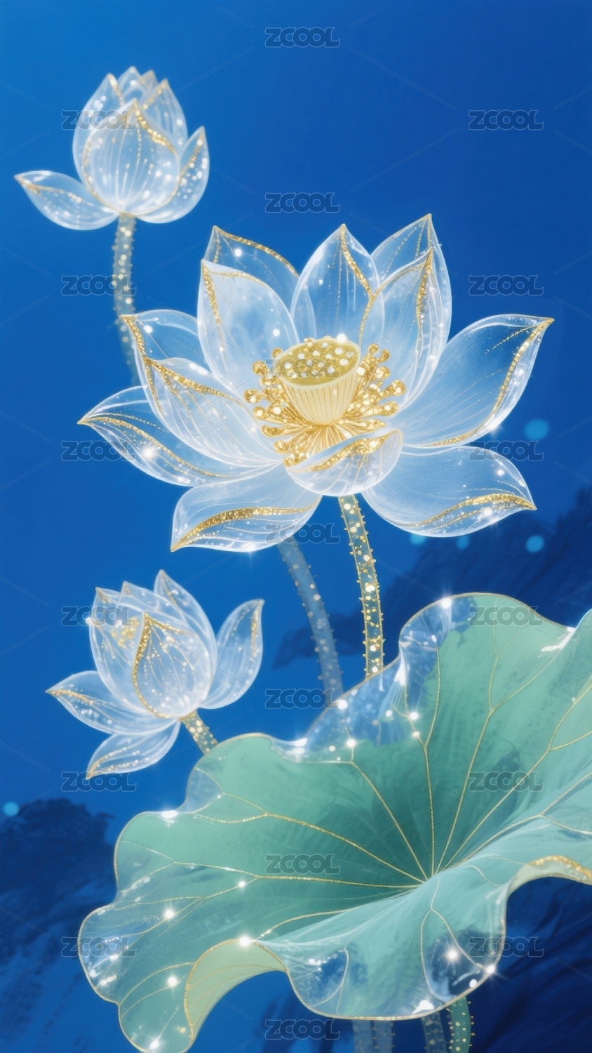 莲花,荷花,花瓣,花蕊,透明,金色,发光,晶莹,细腻,纹理