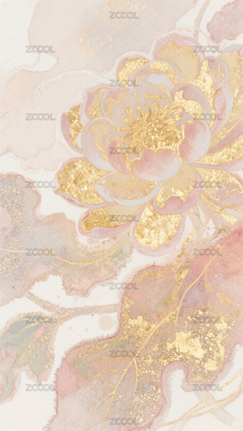 金色花卉水彩艺术图案