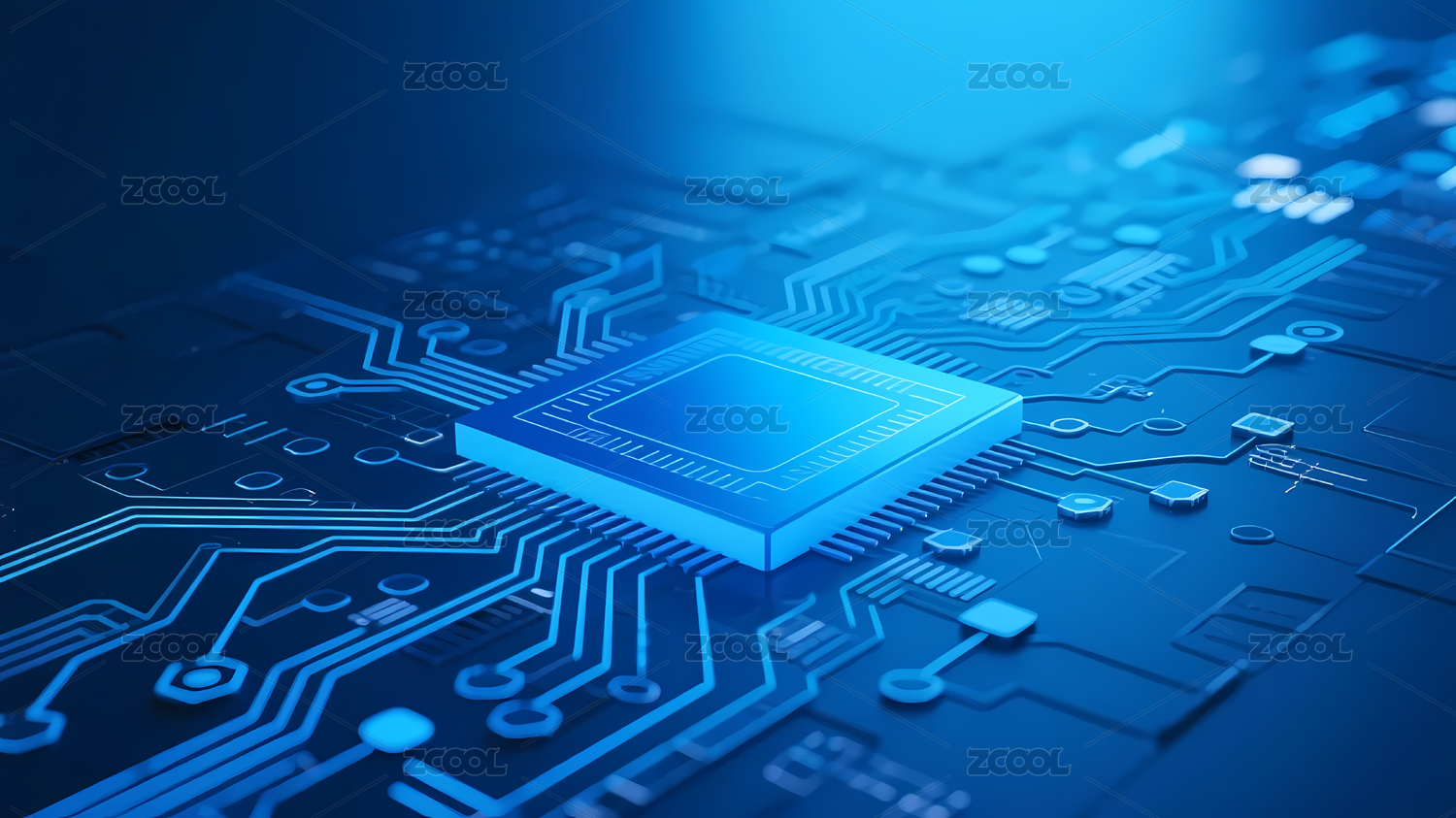 蓝色芯片深蓝电路背景