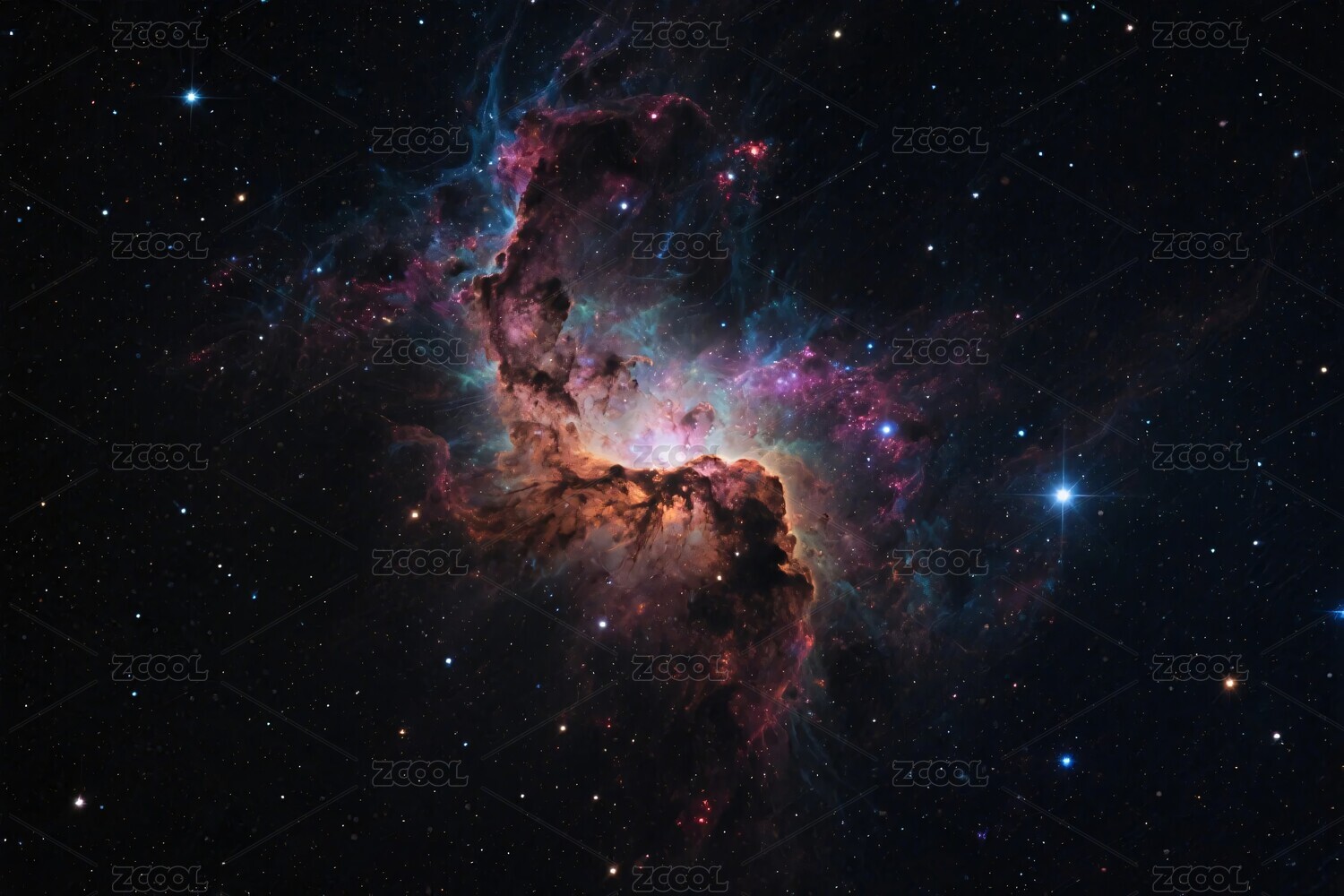 黑色星空橙红蓝星云