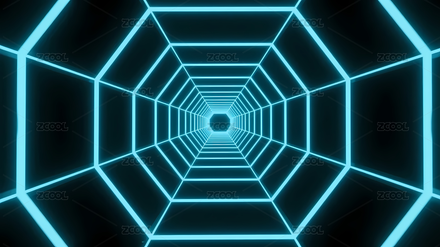 蓝色,深邃,空间,科技,霓虹灯,未来,背景,隧道,八边形,冷色